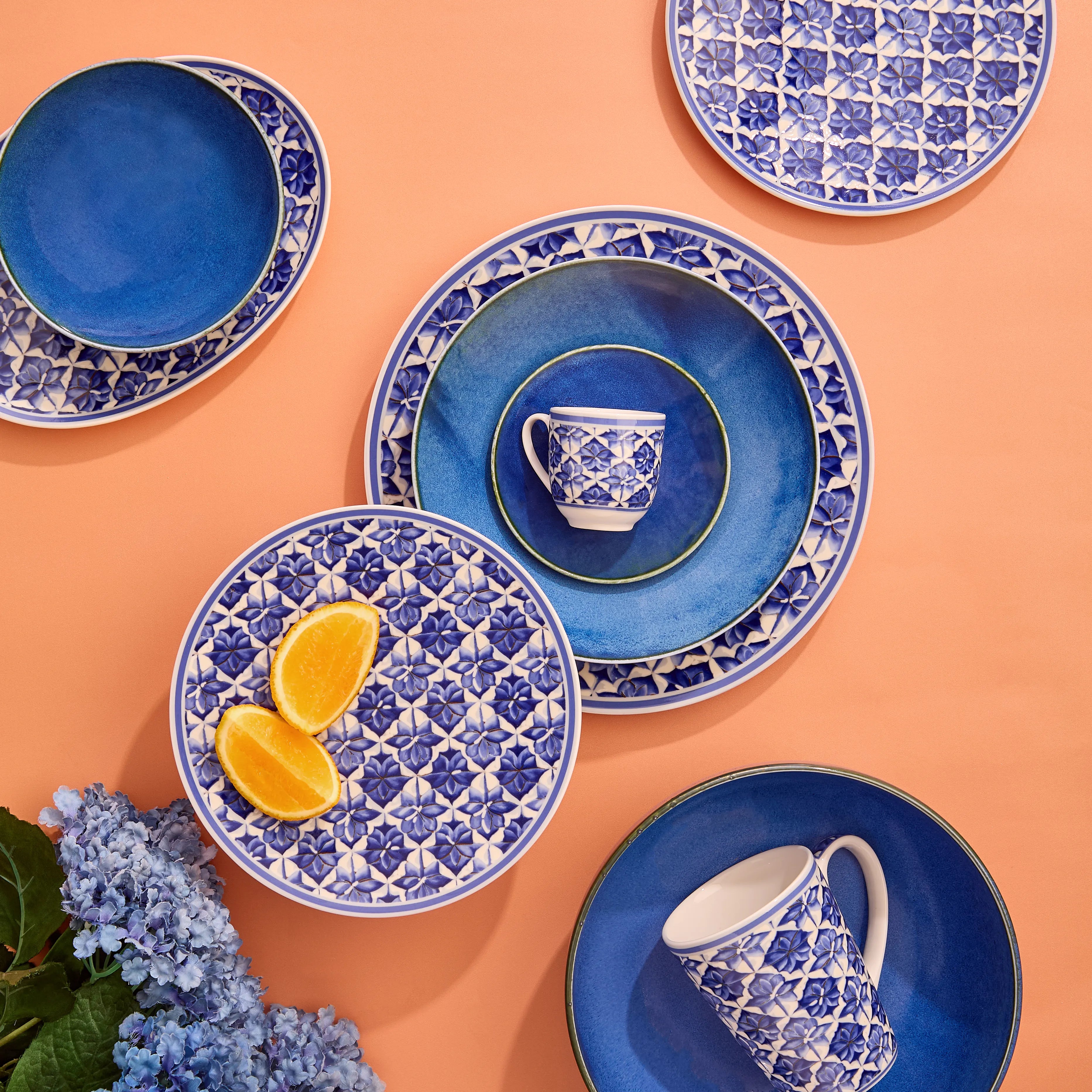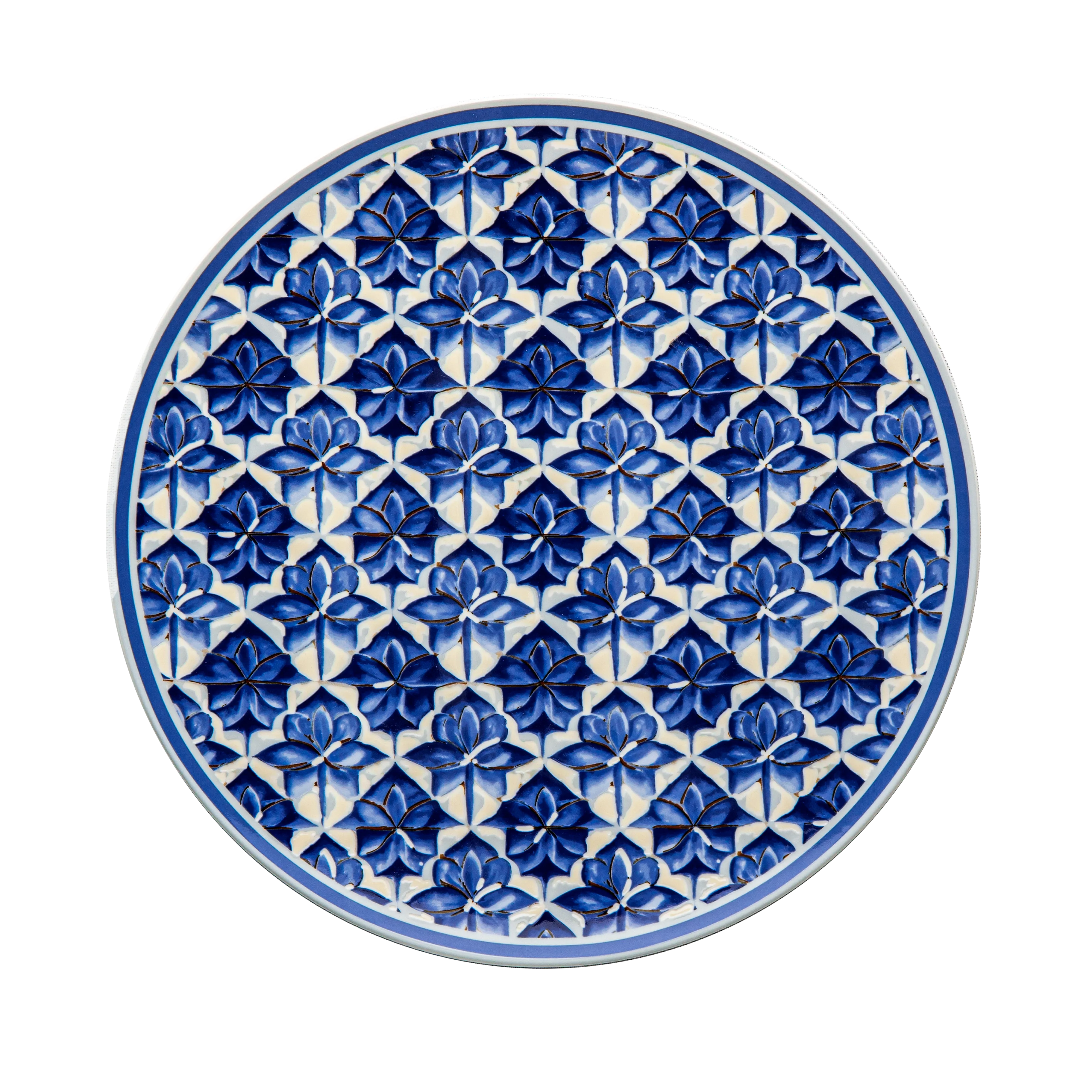 This refined Fathy Mahmoud porcelain set showcases Andalusian Islamic blue patterns in a geometric chess design. A perfect contemporary classic for those who appreciate intricate artistry.