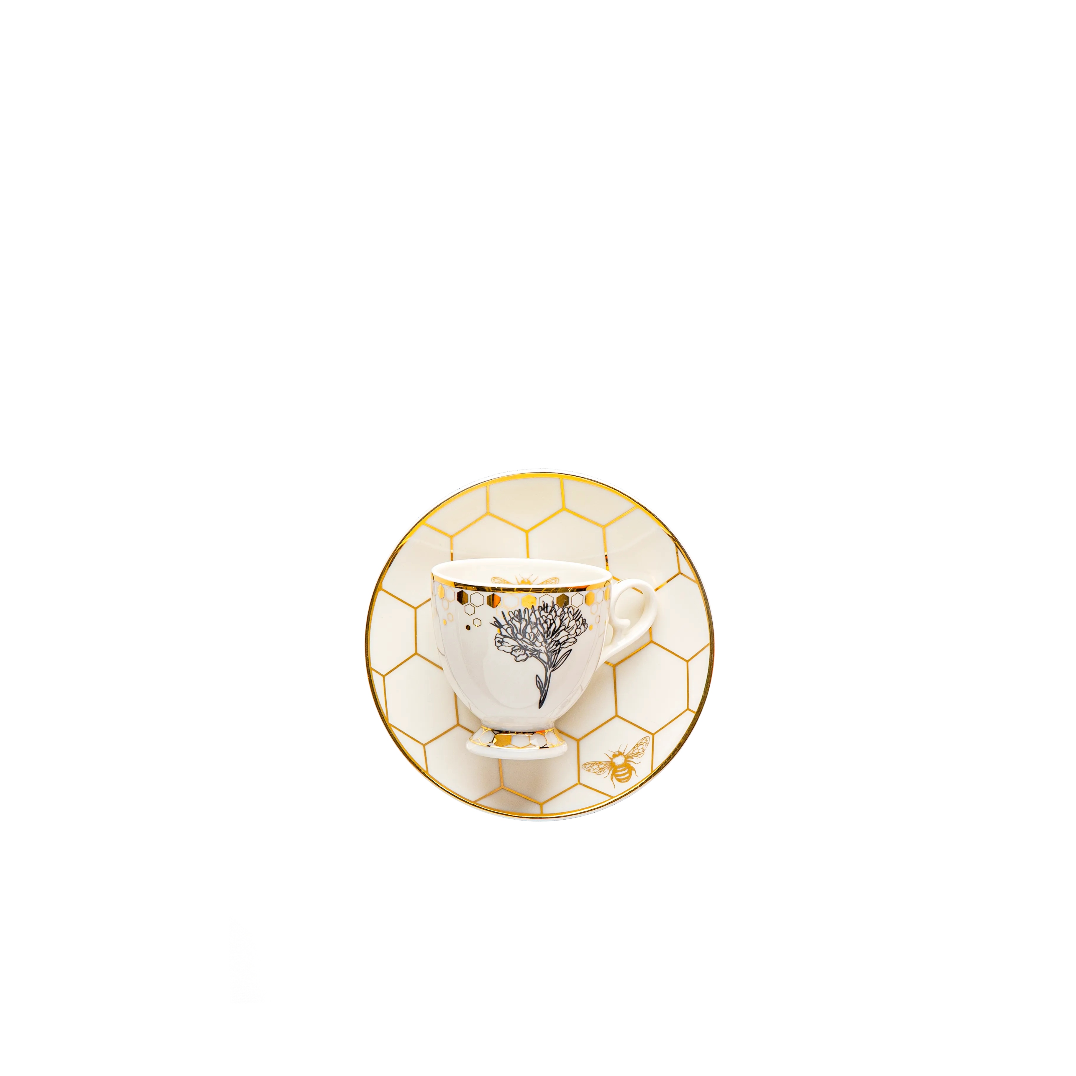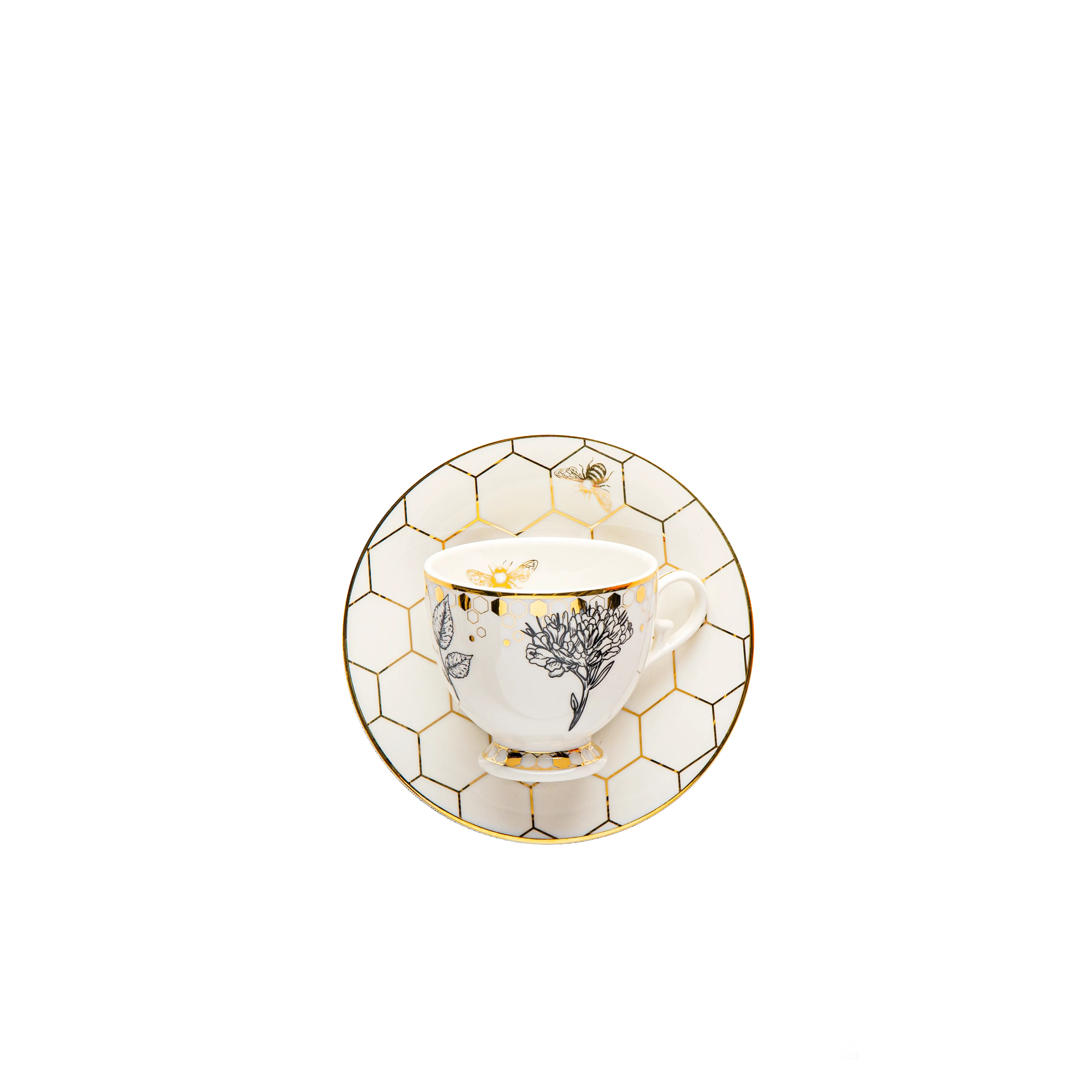 Inspired by the elegance of nature, the Black Bee set captures the beauty of honeycomb patterns and the grace of the bee. With a striking blend of white, black, and gold, it brings a modern yet timeless sophistication to your table, perfect for refined gatherings and special occasions.