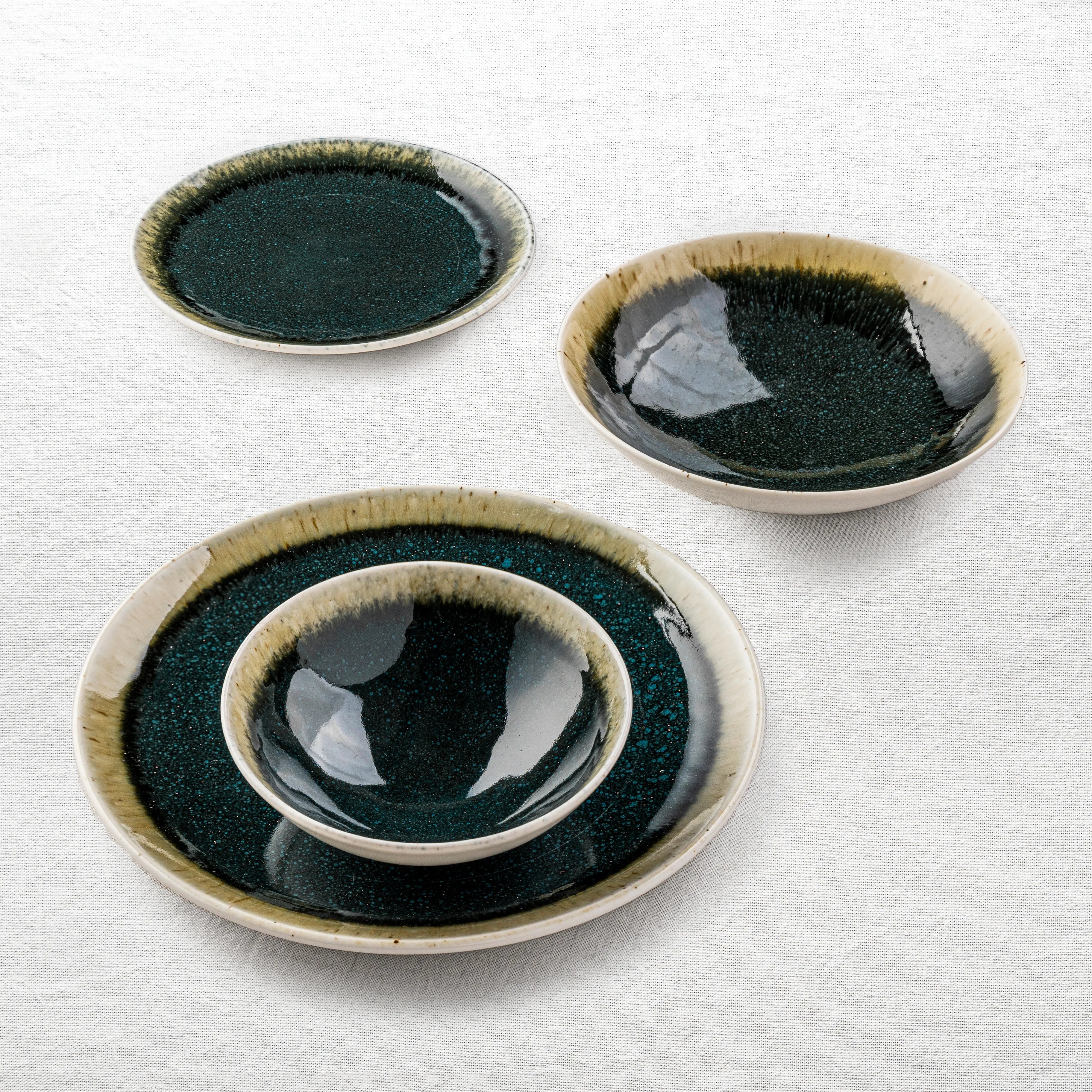 The Boon set is a practical choice for everyday dining, featuring a reactive glaze in a balanced combination of green and beige tones. It is microwave, oven, and dishwasher safe, making it easy to use and clean and offers durability with a refined look.