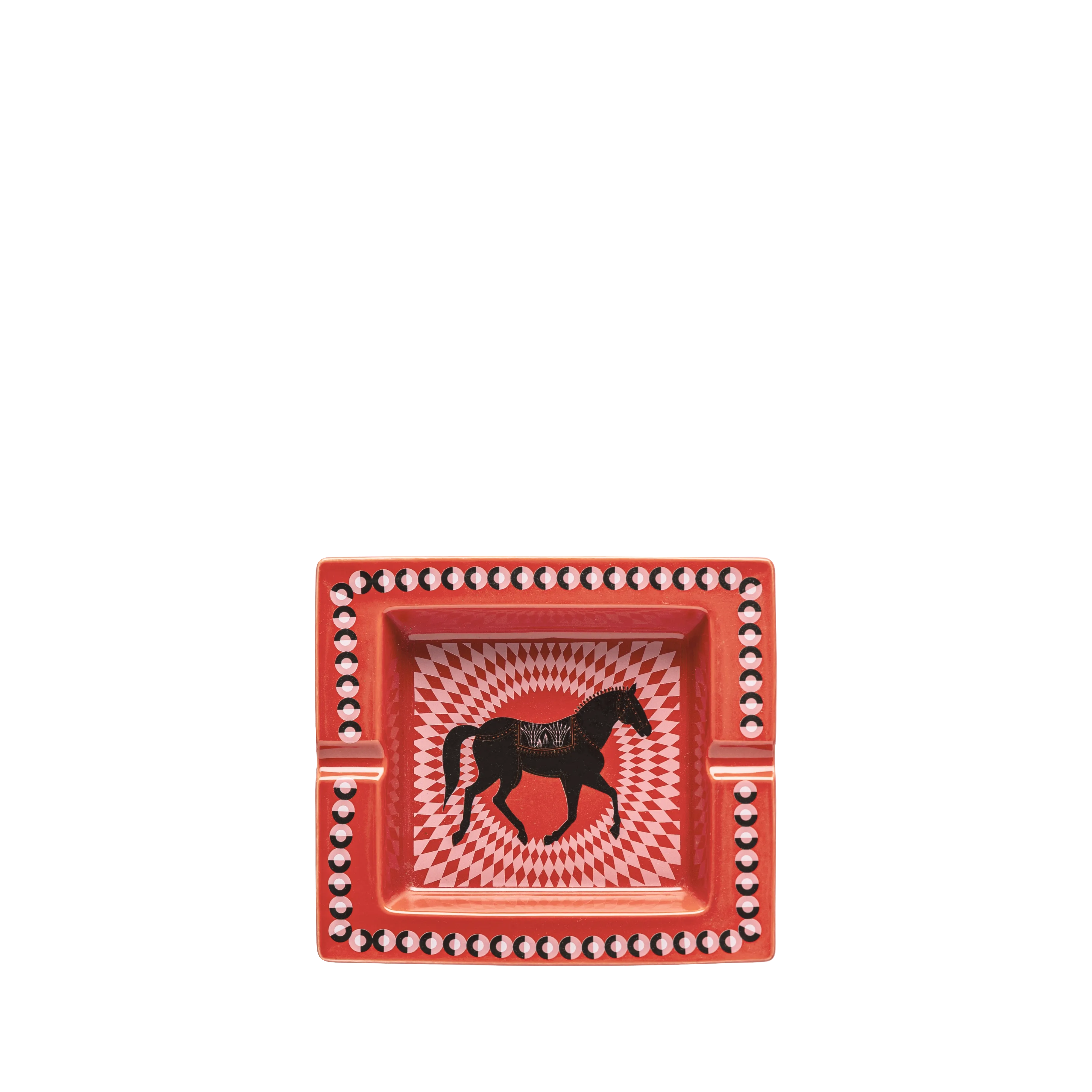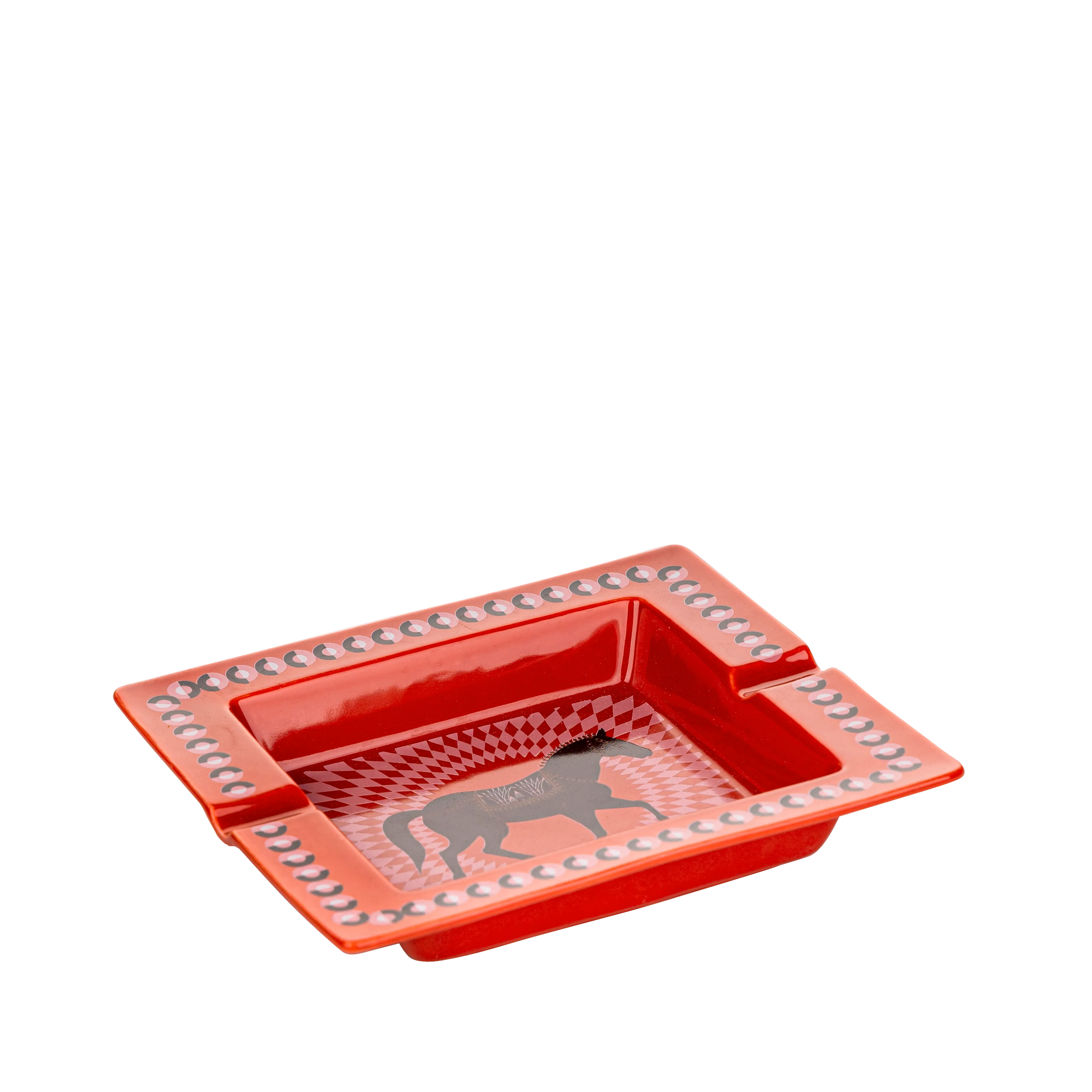 Whimsical and chic, the pink Chase ashtray features bold horse motifs and patterned edges. Perfect as a functional ashtray or as a unique catchall for keys, jewelry, or small trinkets.