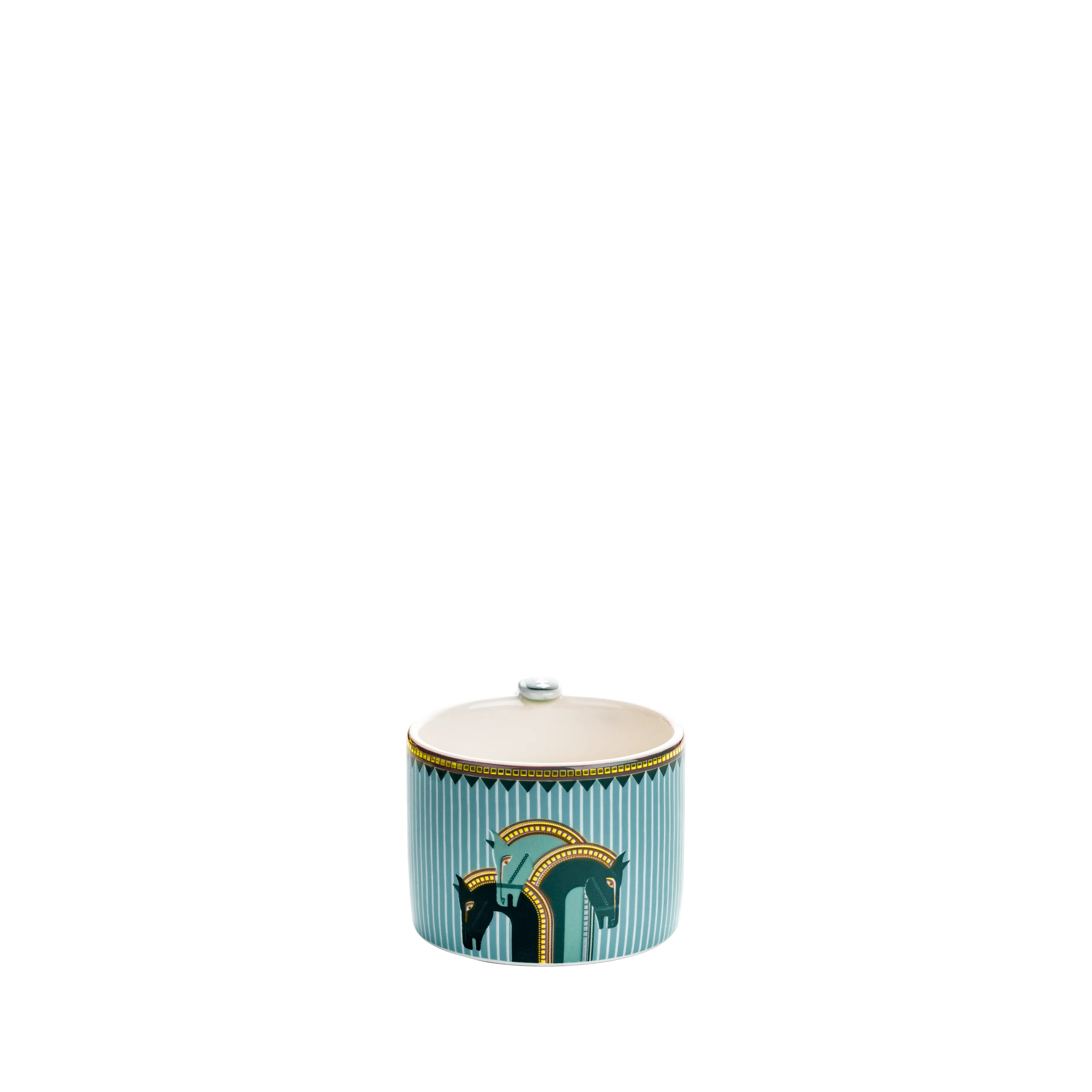 Cool and composed, this blue Fathy Mahmoud Porcelain set brings a refreshing touch to tea time. With golden accents and the signature horse design, it’s both contemporary and timeless.
