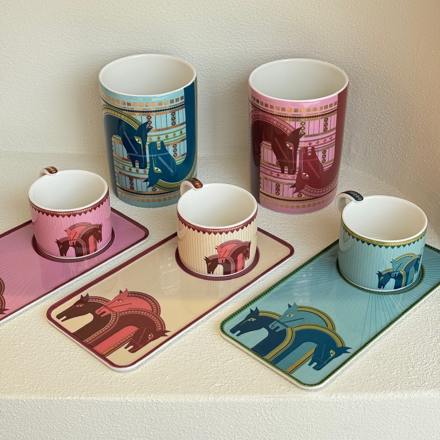 Crafted from Fathy Mahmoud Porcelain, these pink and blue cannisters blend soft hues with gold detailing and the signature Cordovan horse motif. Both functional and decorative, they bring a touch of artistic elegance to any kitchen or display.