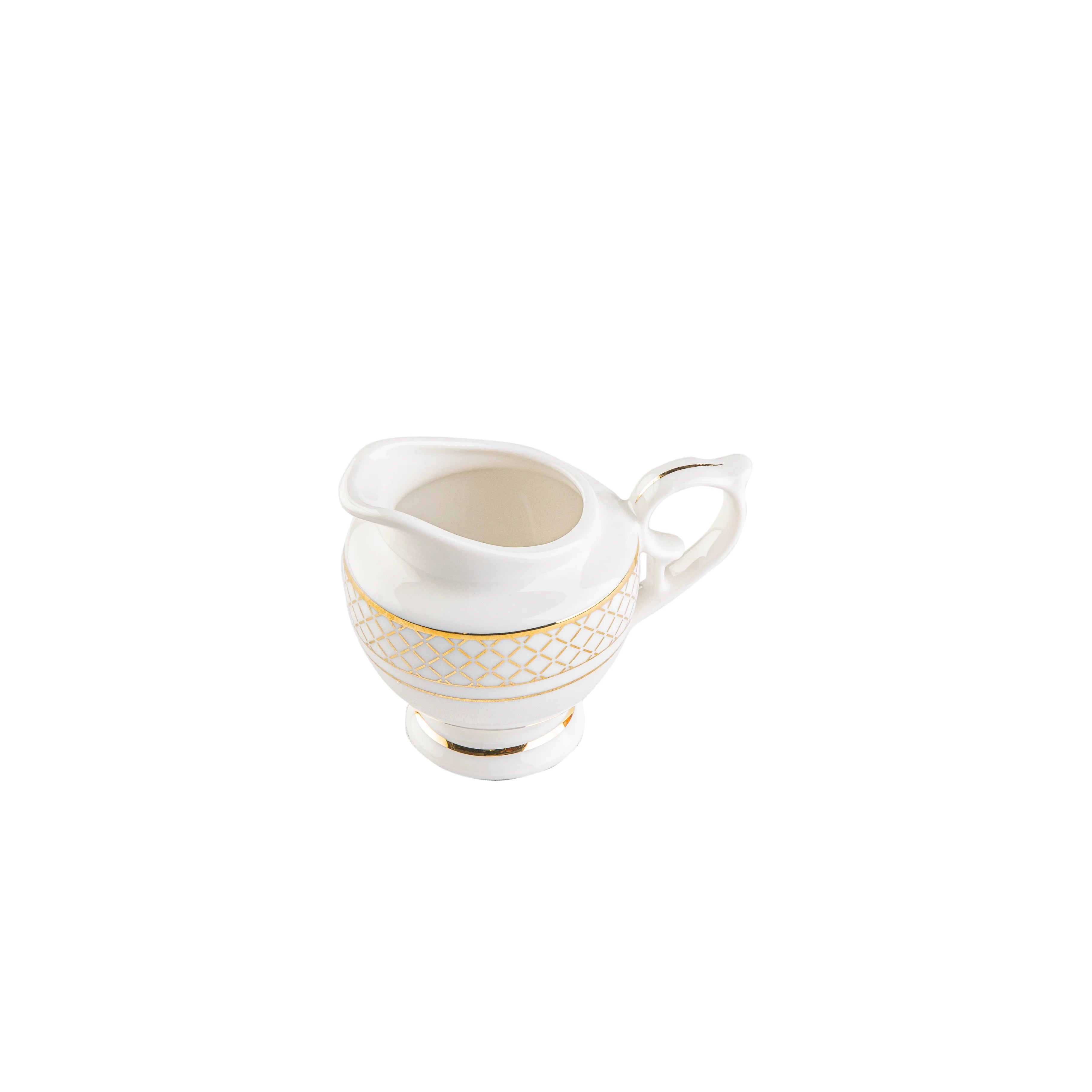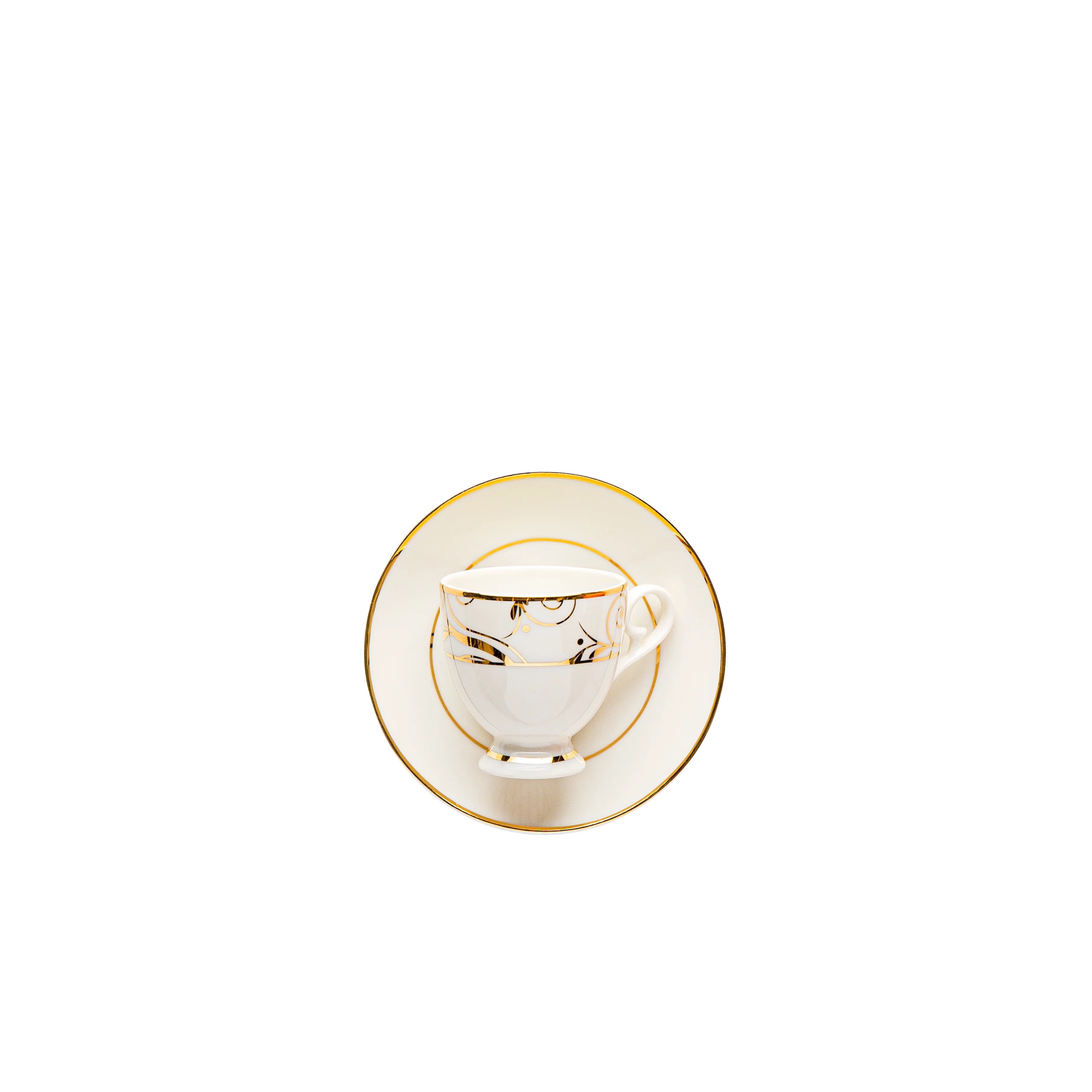 This vibrant Fathy Mahmoud porcelain set showcases playful free-spirited spirals intertwined with a mesh of gold lines. The design reimagines formal gold accents into a modern dining aesthetic, creating a bold and stylish statement.