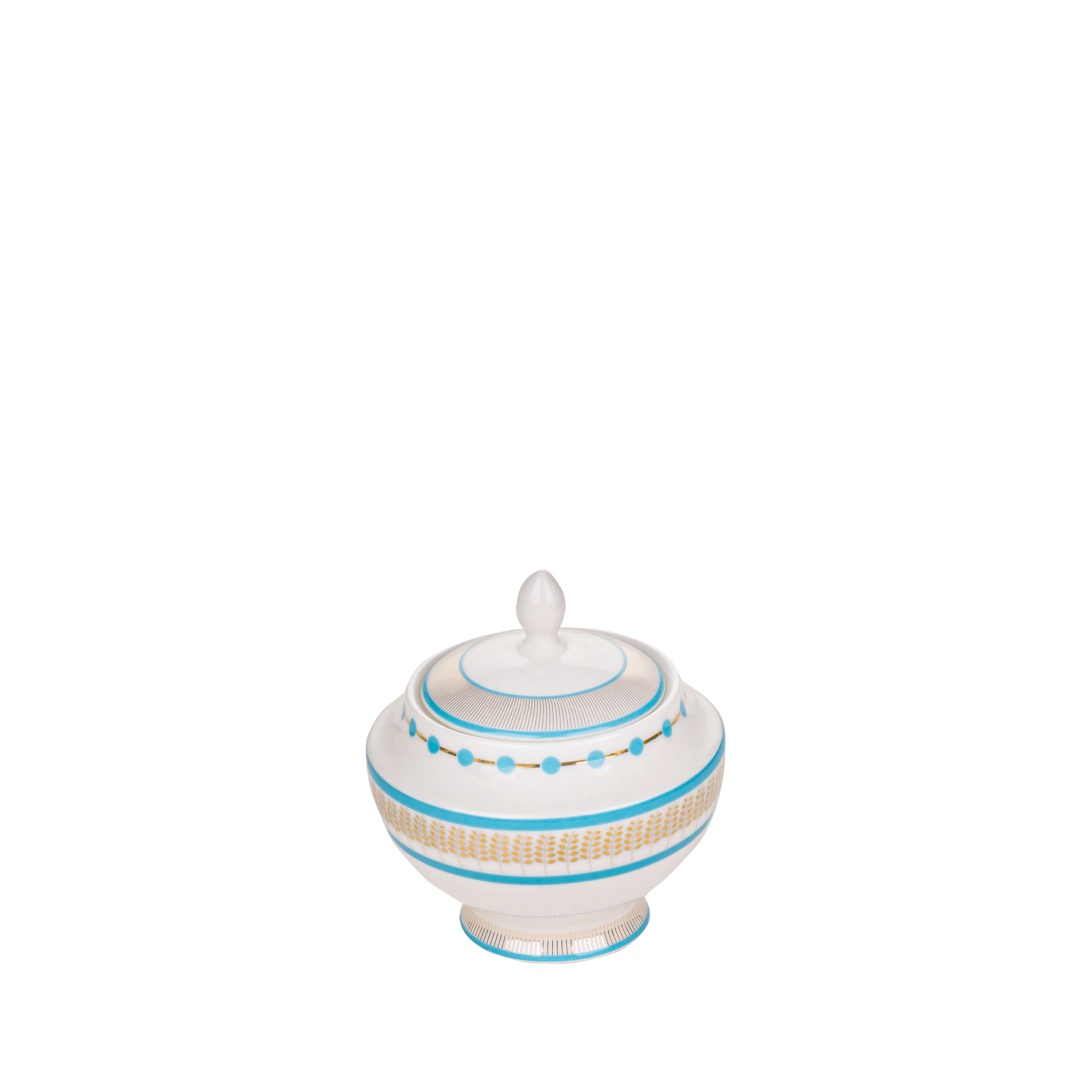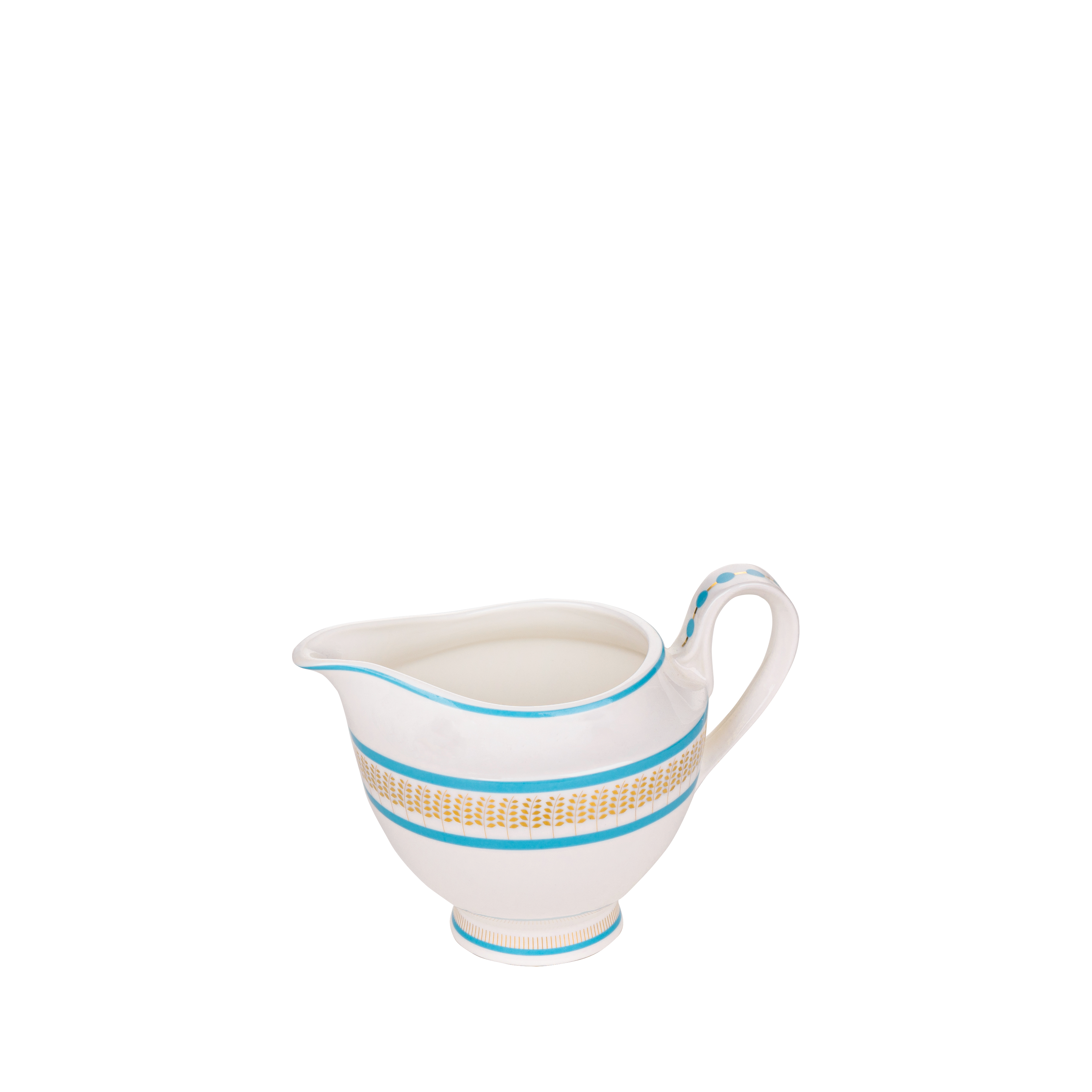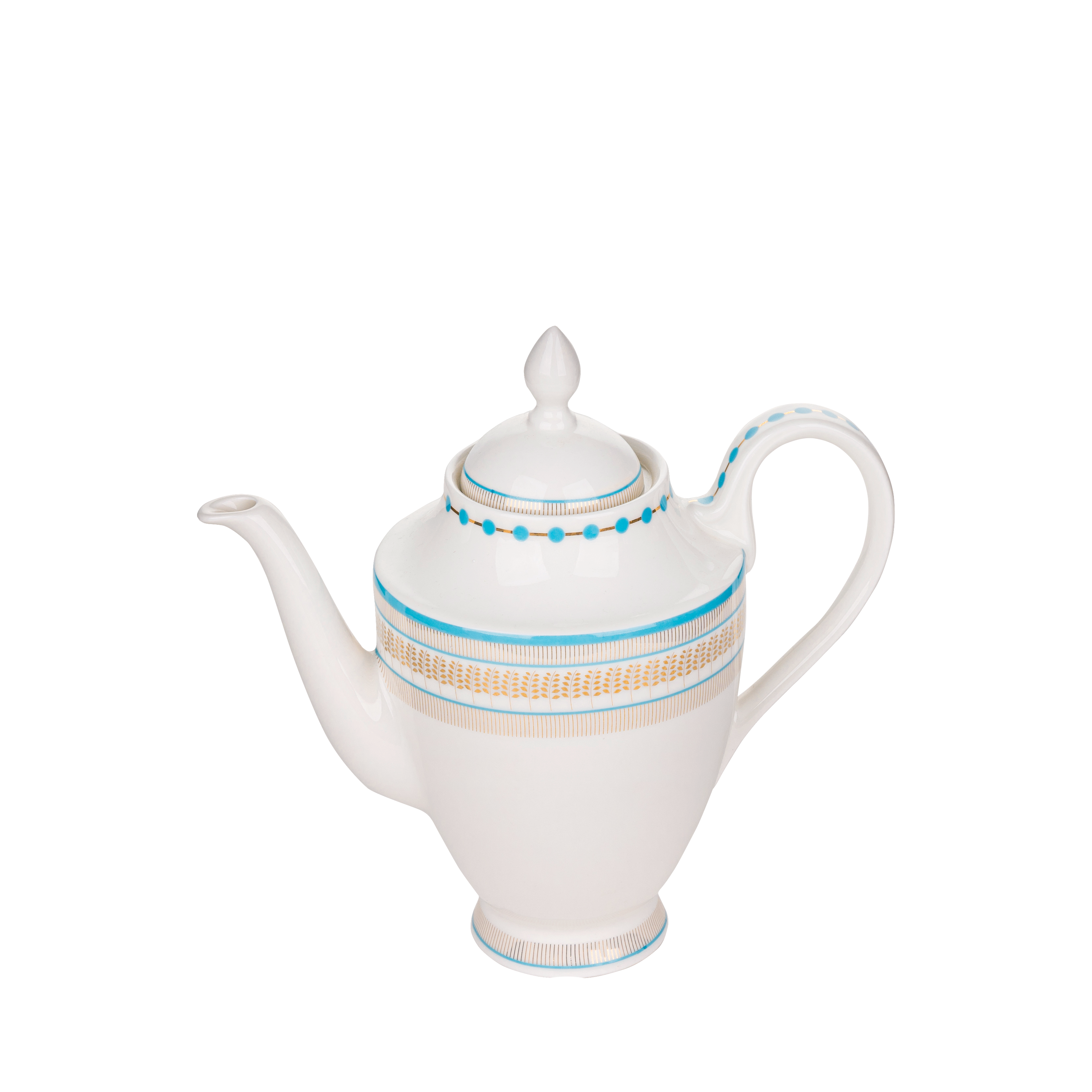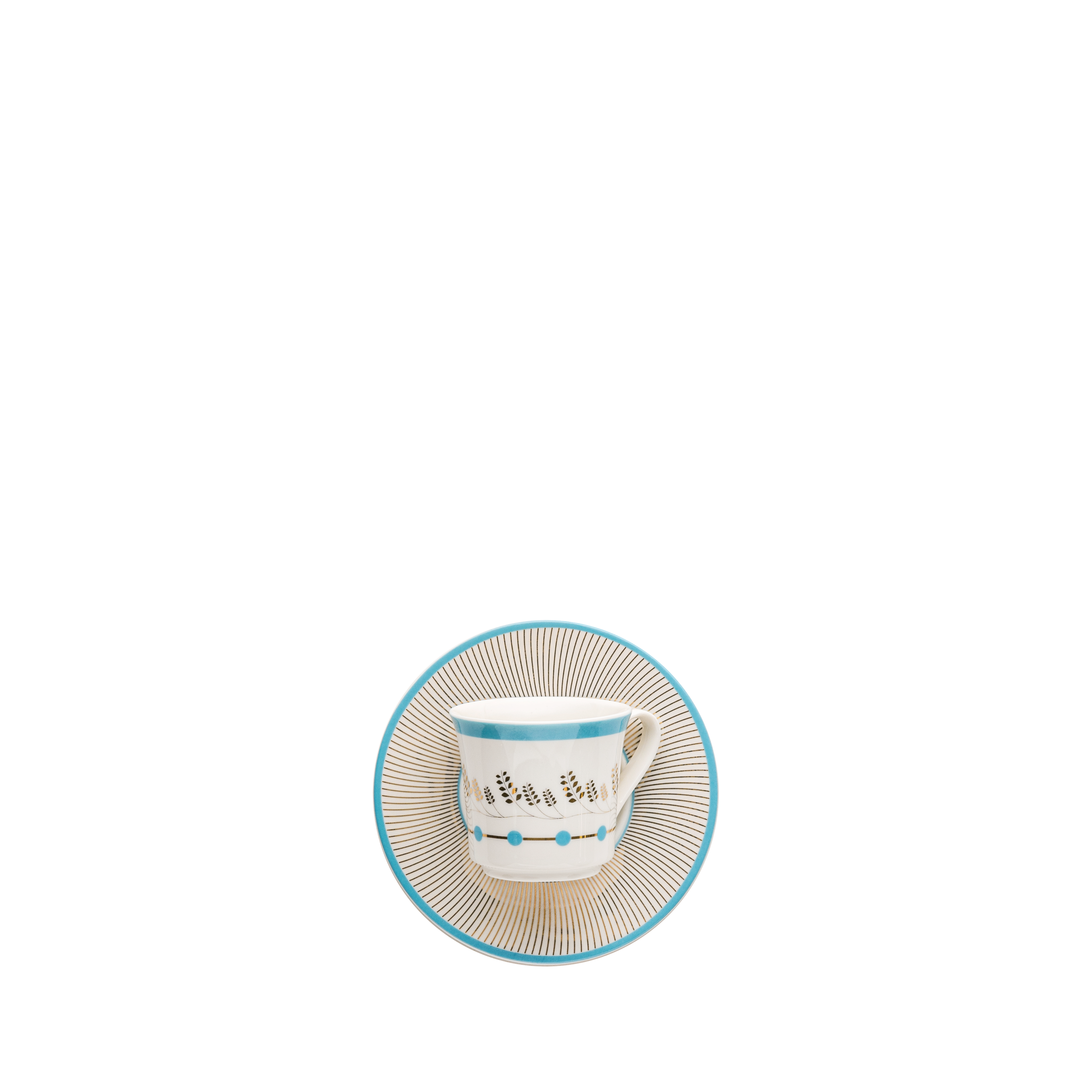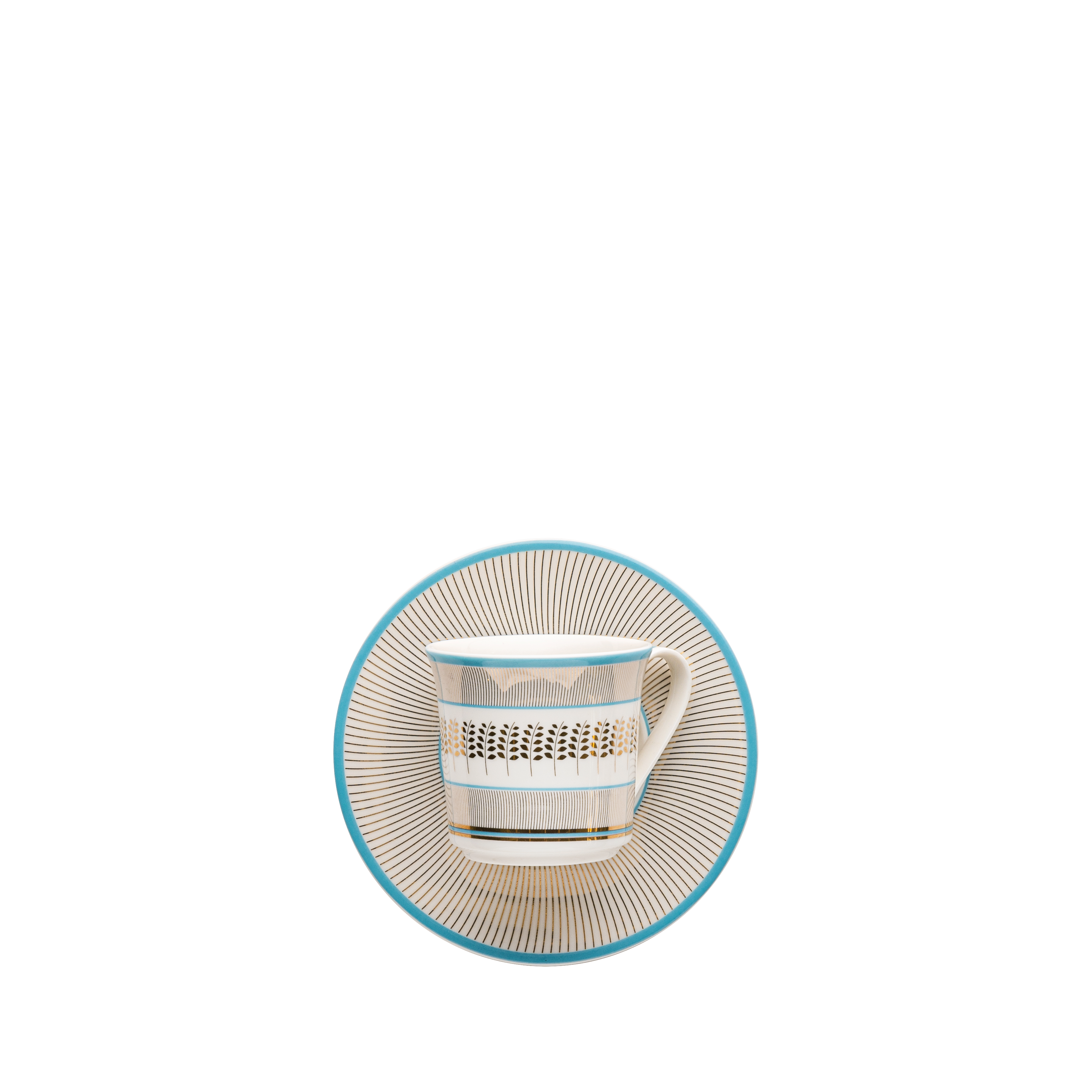 This Fathy Mahmoud Dinner set is Inspired by the quiet majesty of golden fields, the Flowing Wheat set blends tradition with refined celebration. Its delicate gold and baby blue details evoke the grace of swaying wheat and sunlit skies. A tribute to Egyptian heritage.