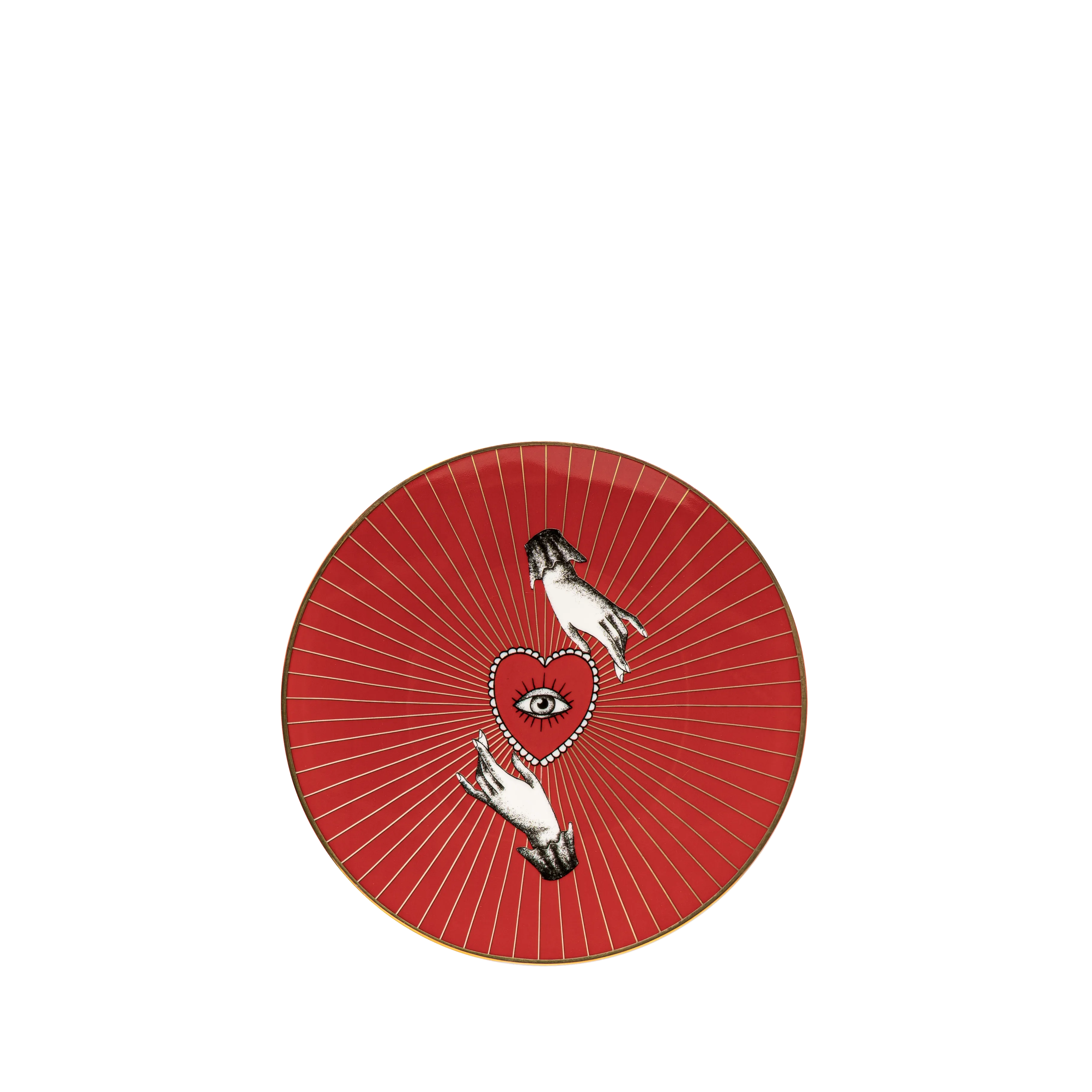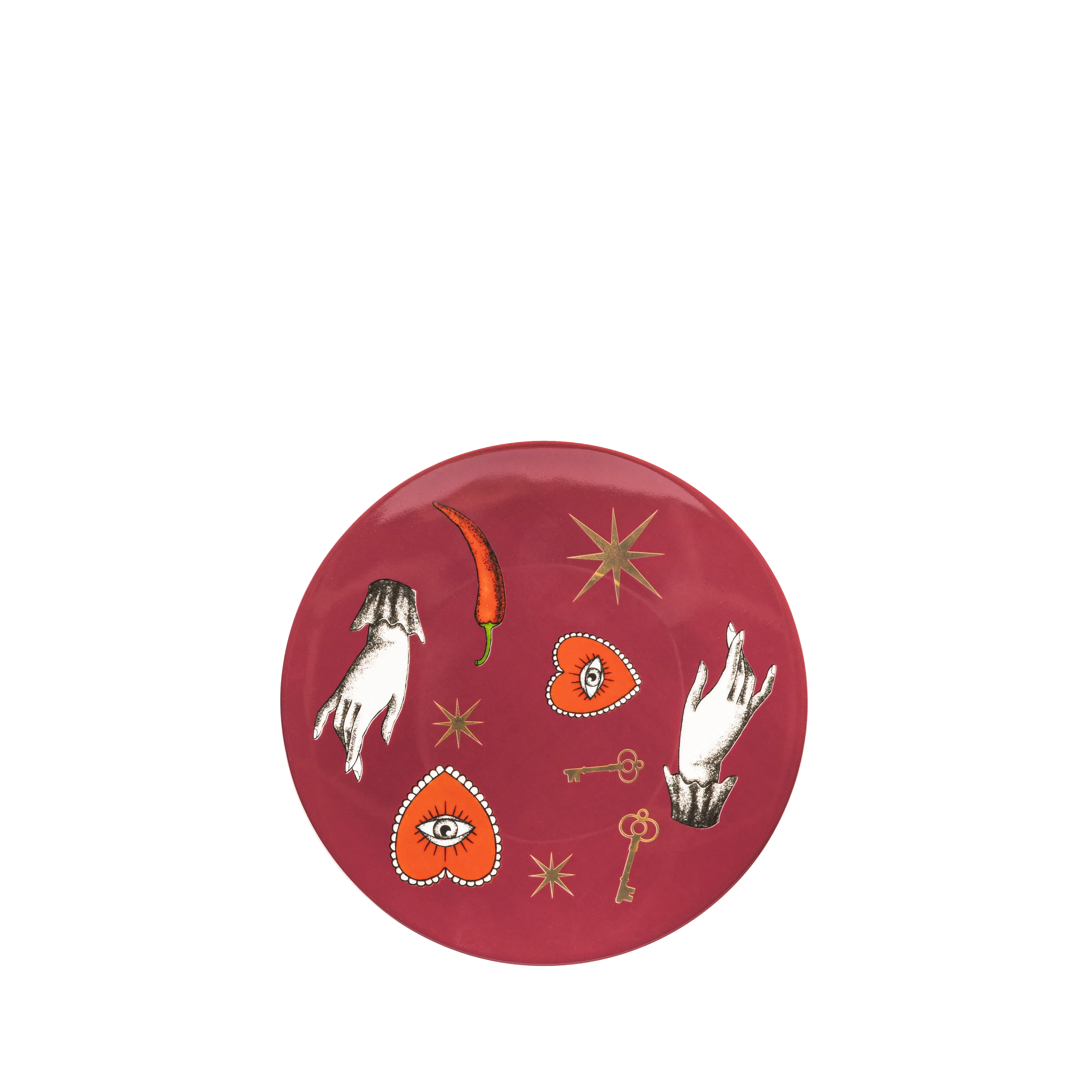 Dive into the magic of the night with this enchanting 6-piece burgundy dessert set from Fathy Mahmoud porcelain. Adorned with mysterious hands, watchful hearts, and vintage keys, all kissed with delicate gold accents, it brings an air of intrigue and elegance to every gathering. A perfect blend of bold color and refined artistry, designed to captivate and delight.