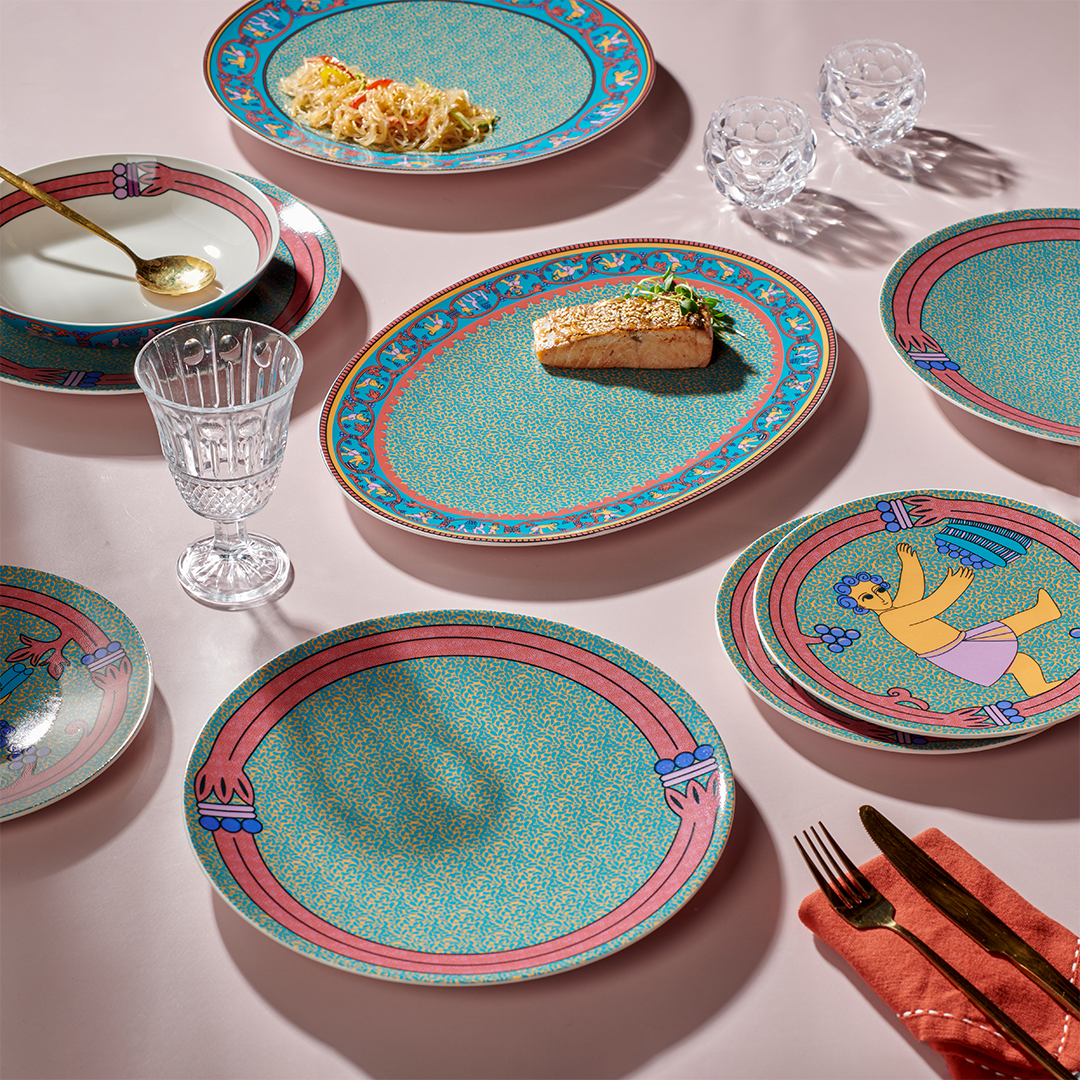 Inspired by the vibrant beauty of vineyard seasons, this dinner set features hand-painted grape motifs that celebrate color, abundance, and craftsmanship. Designed to bring warmth and character to any table, it transforms every meal into a lively, artful experience.