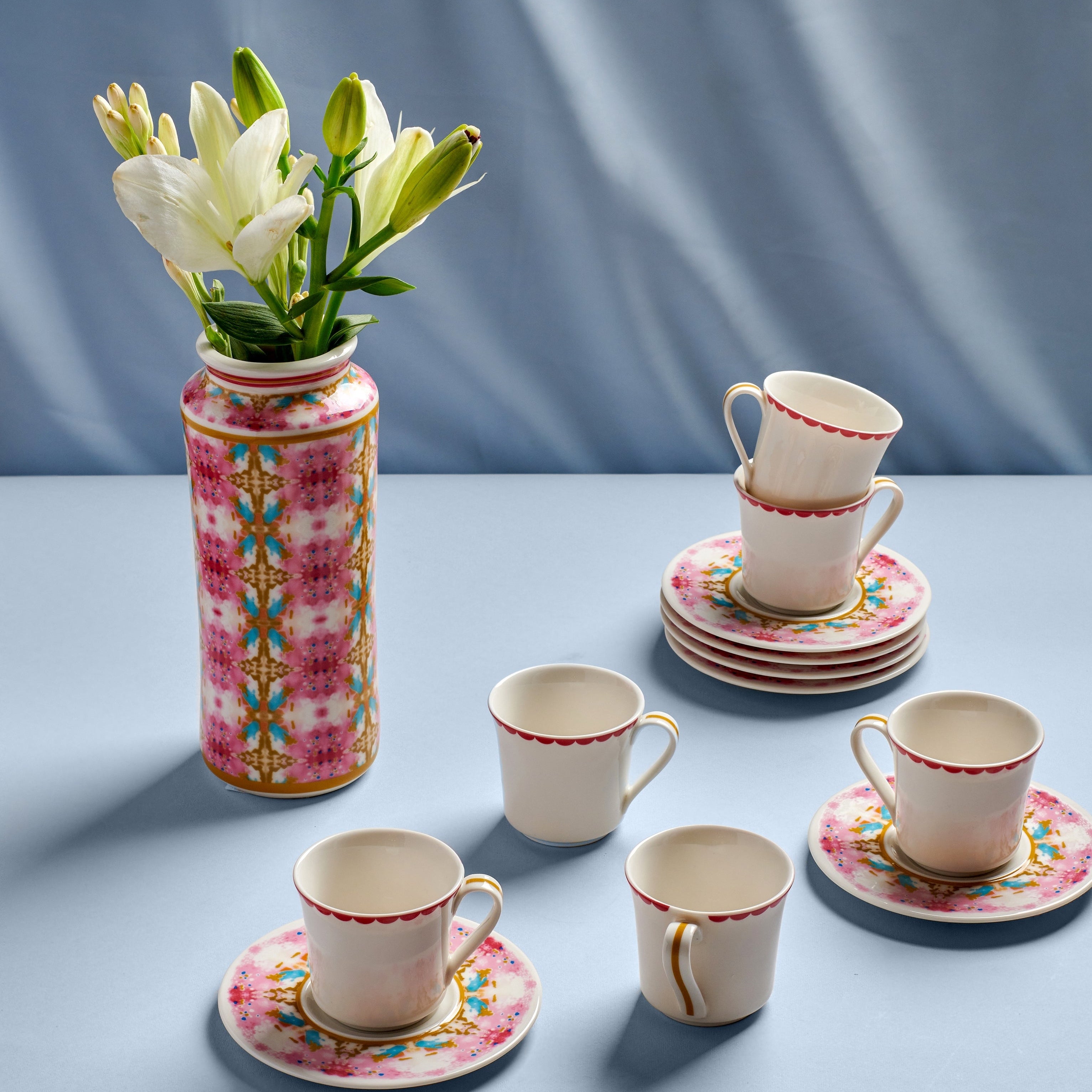 Dressed in vivid folkloric motifs, this porcelain vase stands beautifully on its own or with fresh blooms, adding charm to any corner.