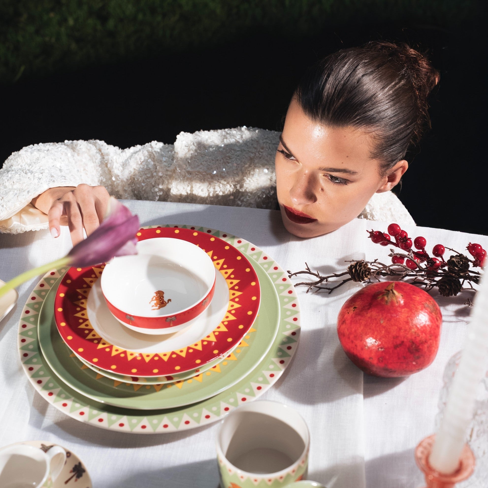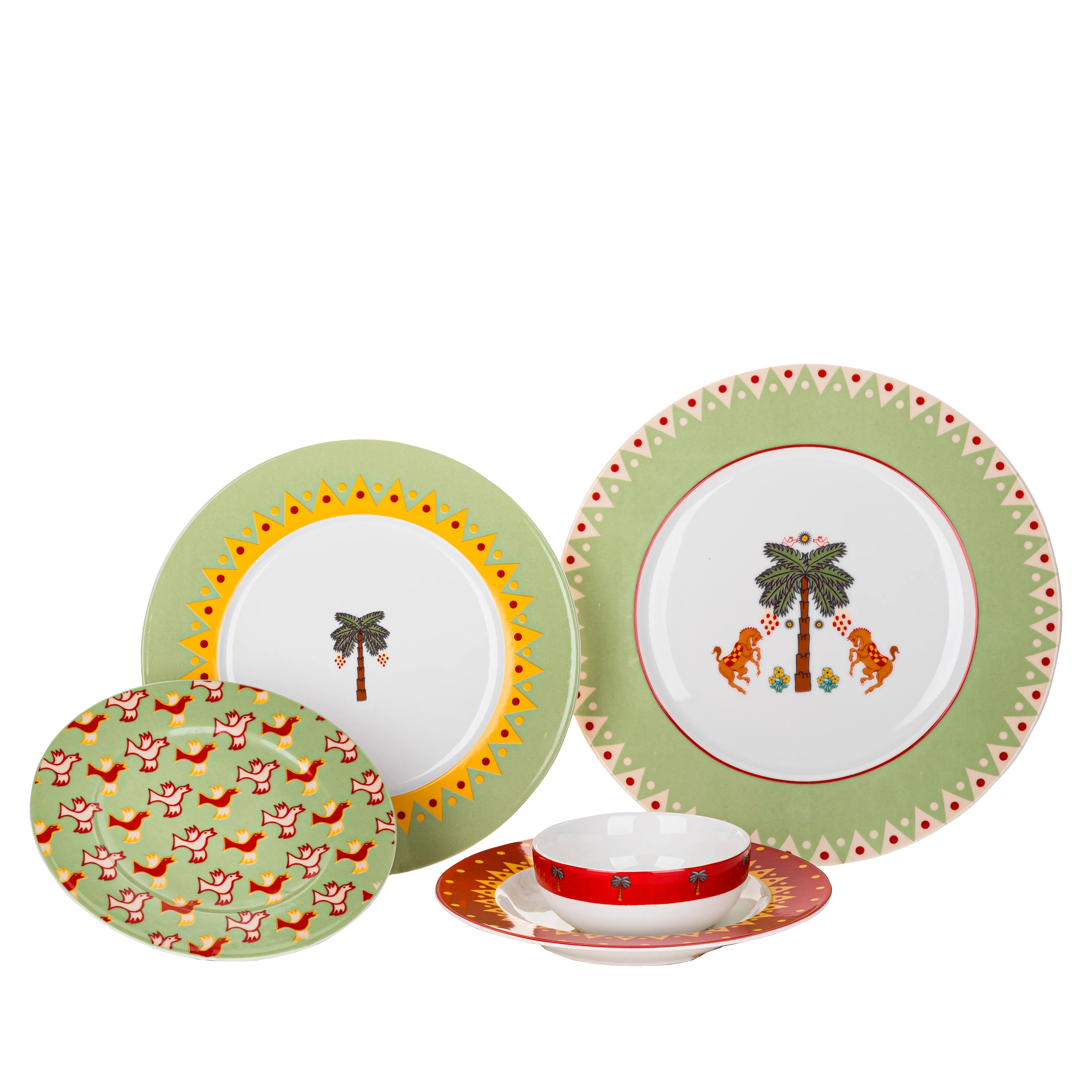 Infused with folkloric charm, the Mermah dinner set features vibrant patterns and handcrafted-inspired details. Each piece brings character and cultural richness to the table, making every meal a celebration of heritage and style.