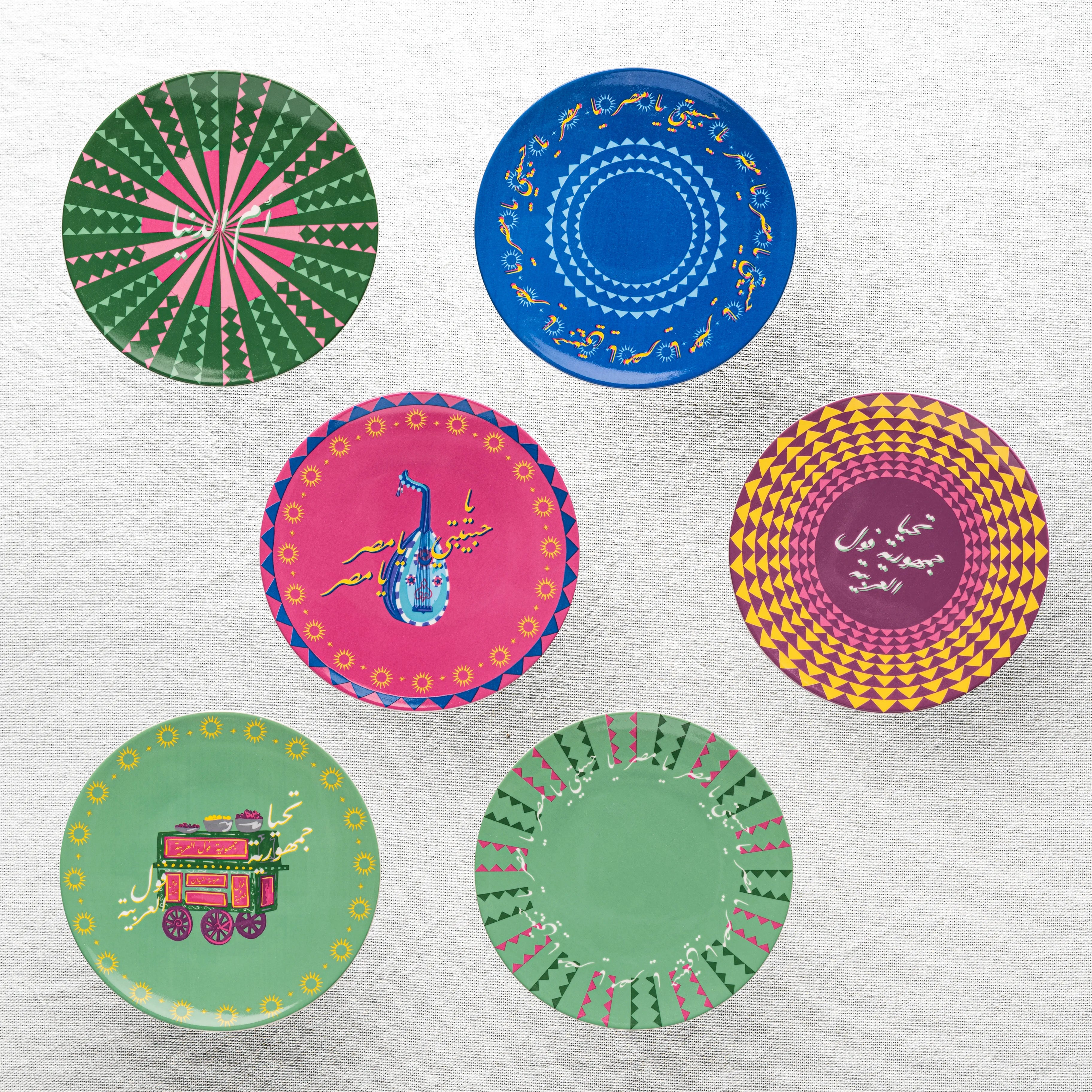 Bold, vibrant, and rooted in Egyptian heritage, Oum El Doina brings street art to your table. Each plate features playful patterns and nostalgic designs, perfect for serving sweets with style.
