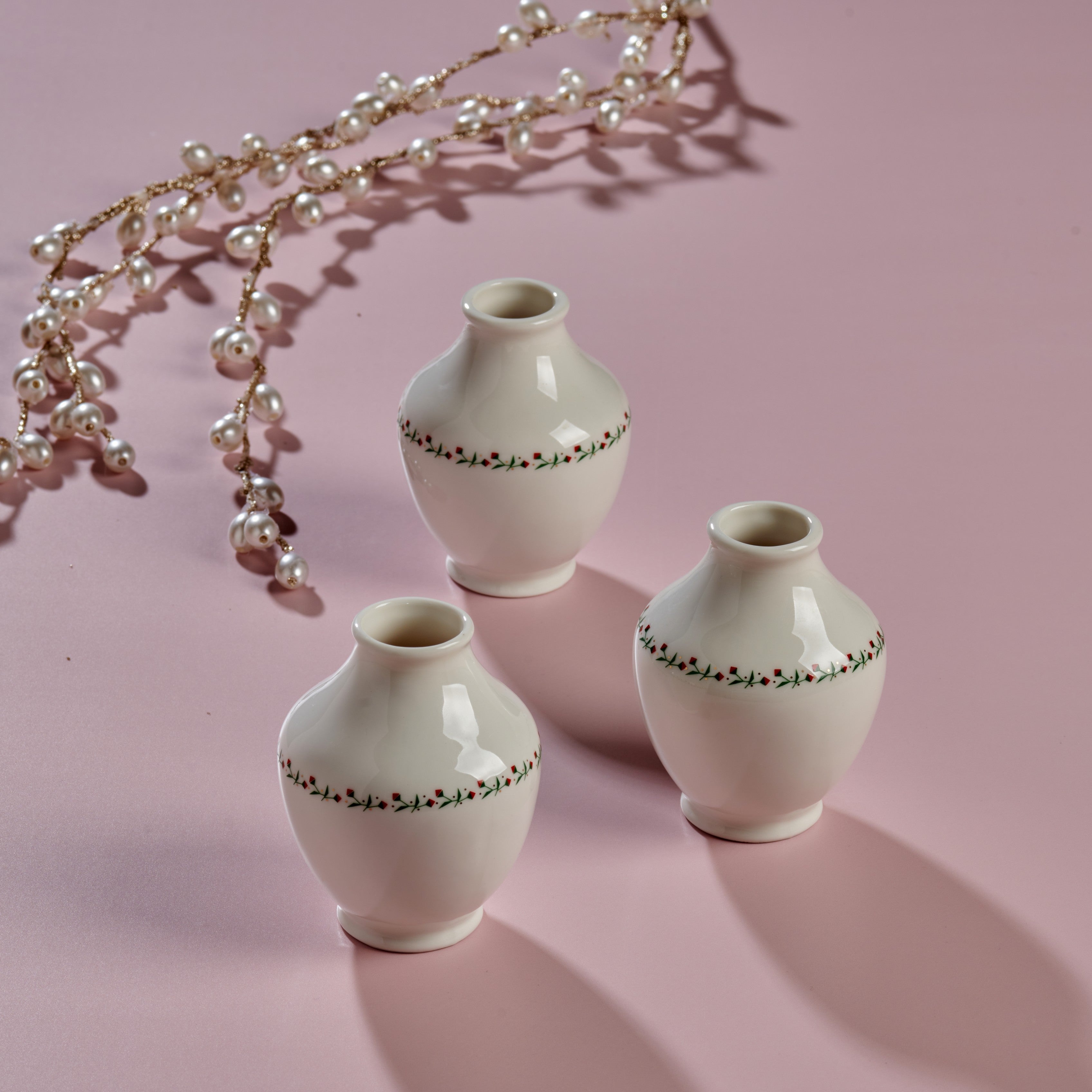 Add a festive touch to any space with this charming set of small vases. Featuring delicate poinsettia-inspired details and subtle gold accents, they are perfect for seasonal decor or thoughtful gifting.