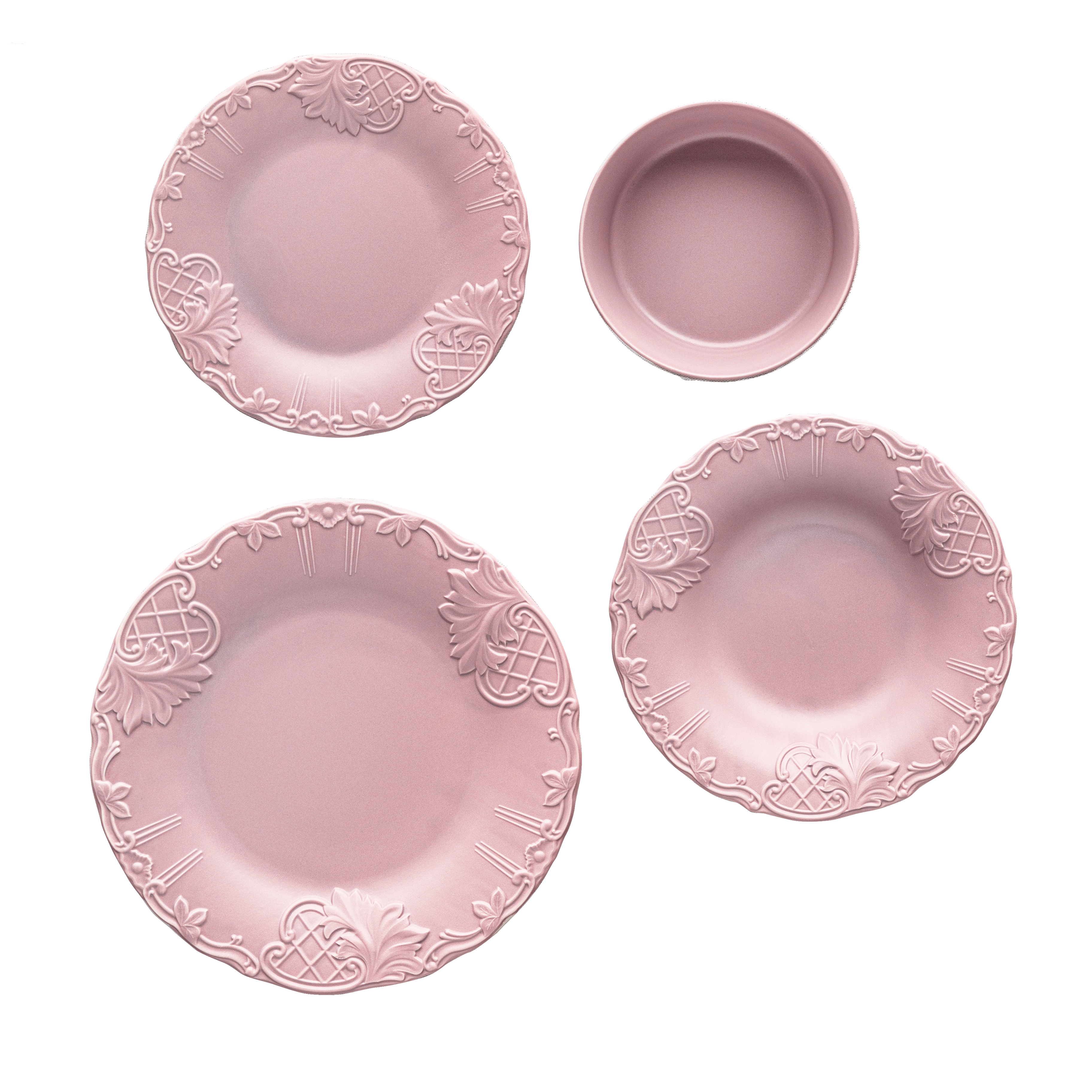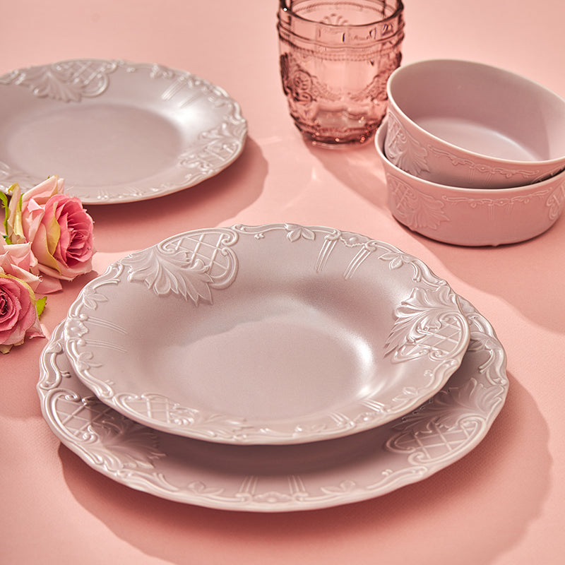 6 dinner plates 27cm, 6 dessert plates 21cm, 6 soup plates 23cm, 6 bowls