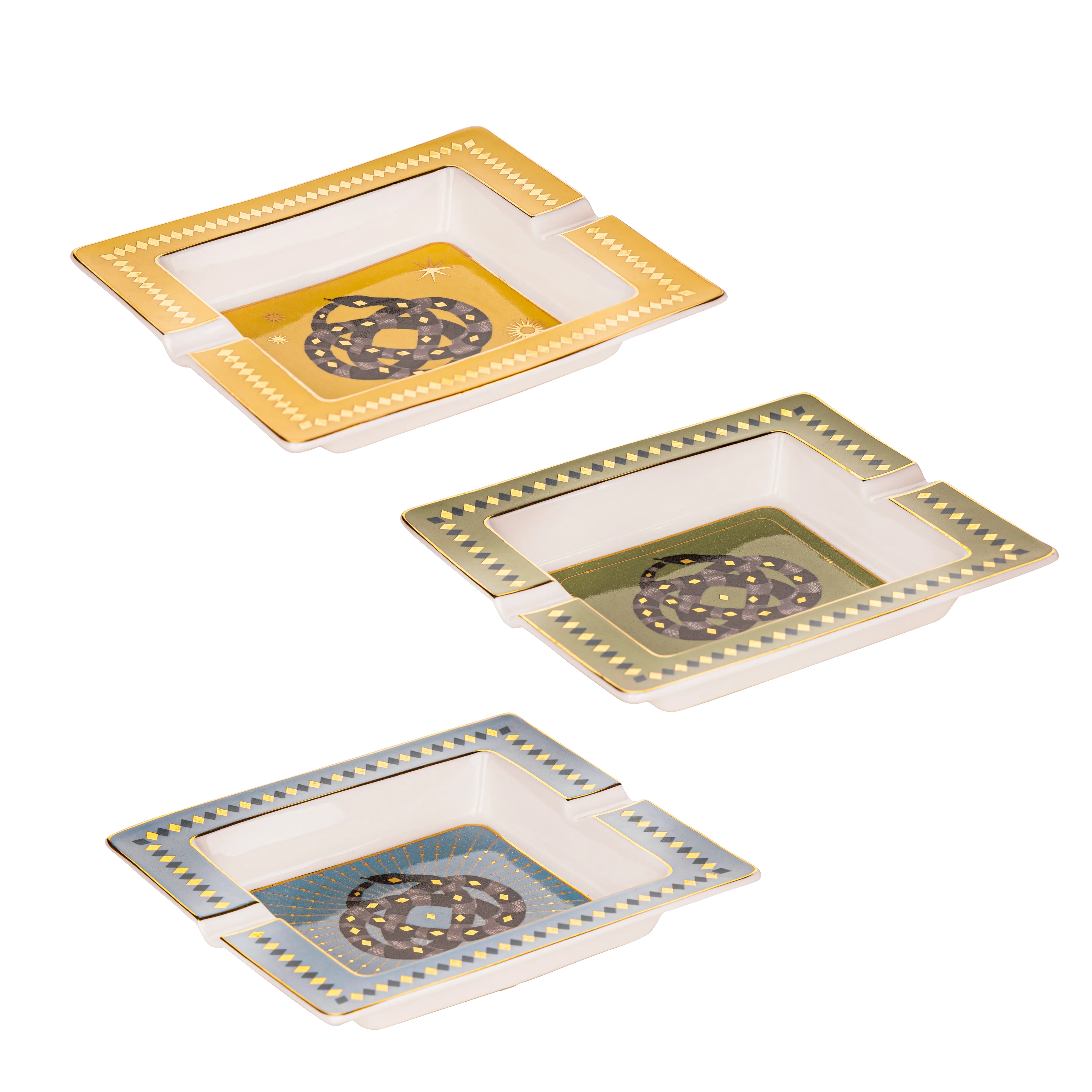 Striking in cool blue with fine gold detailing, this Fathy Mahmoud Porcelain ashtray offers a refined, functional accent, perfectly crafted for everyday use with a touch of sophistication.