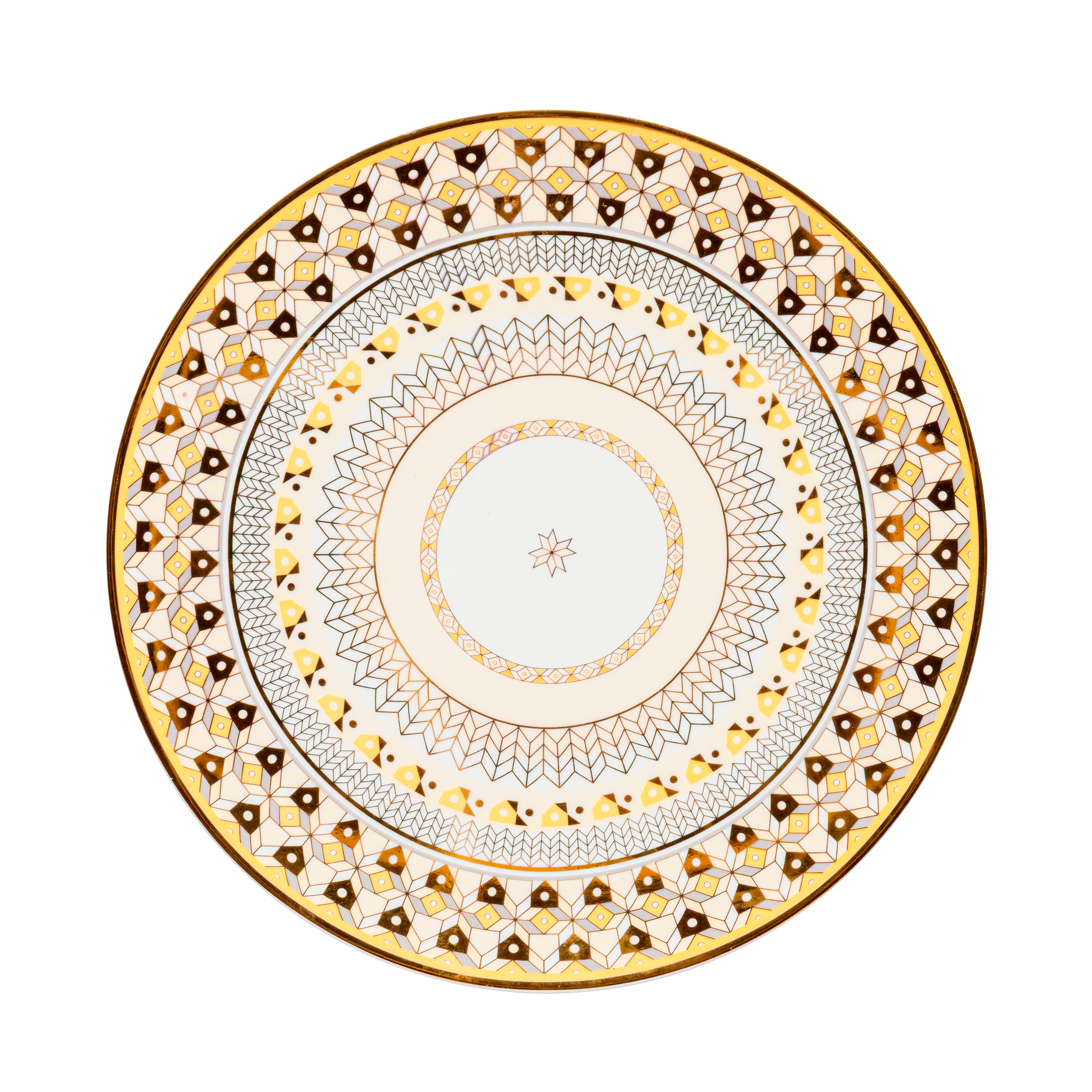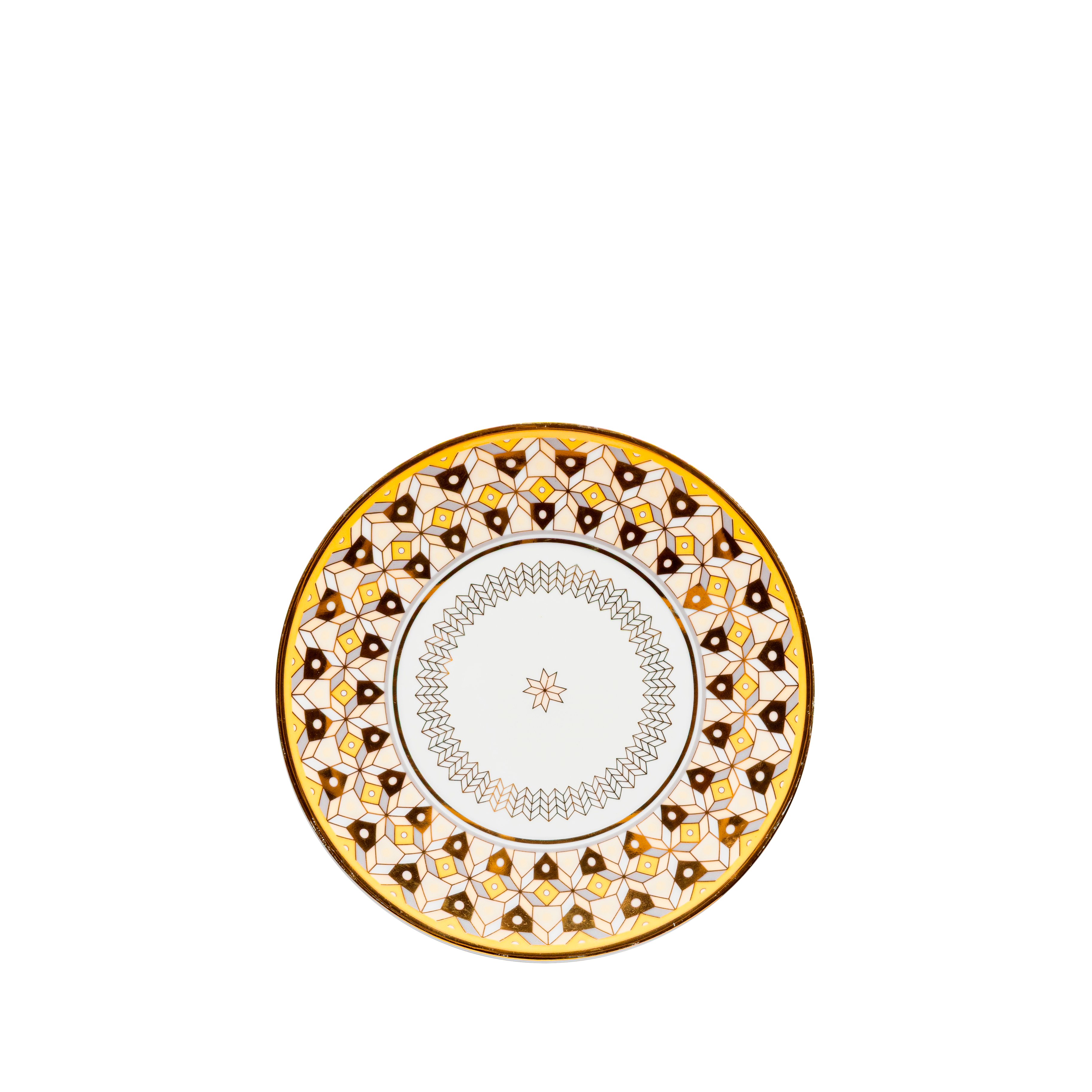 7 Pieces - 6 Person Setting:6 dessert plates + 1 showplateDelicately patterned with luminous accents, this dessert set offers a balanced blend of artistry and elegance for elevated dessert presentation.