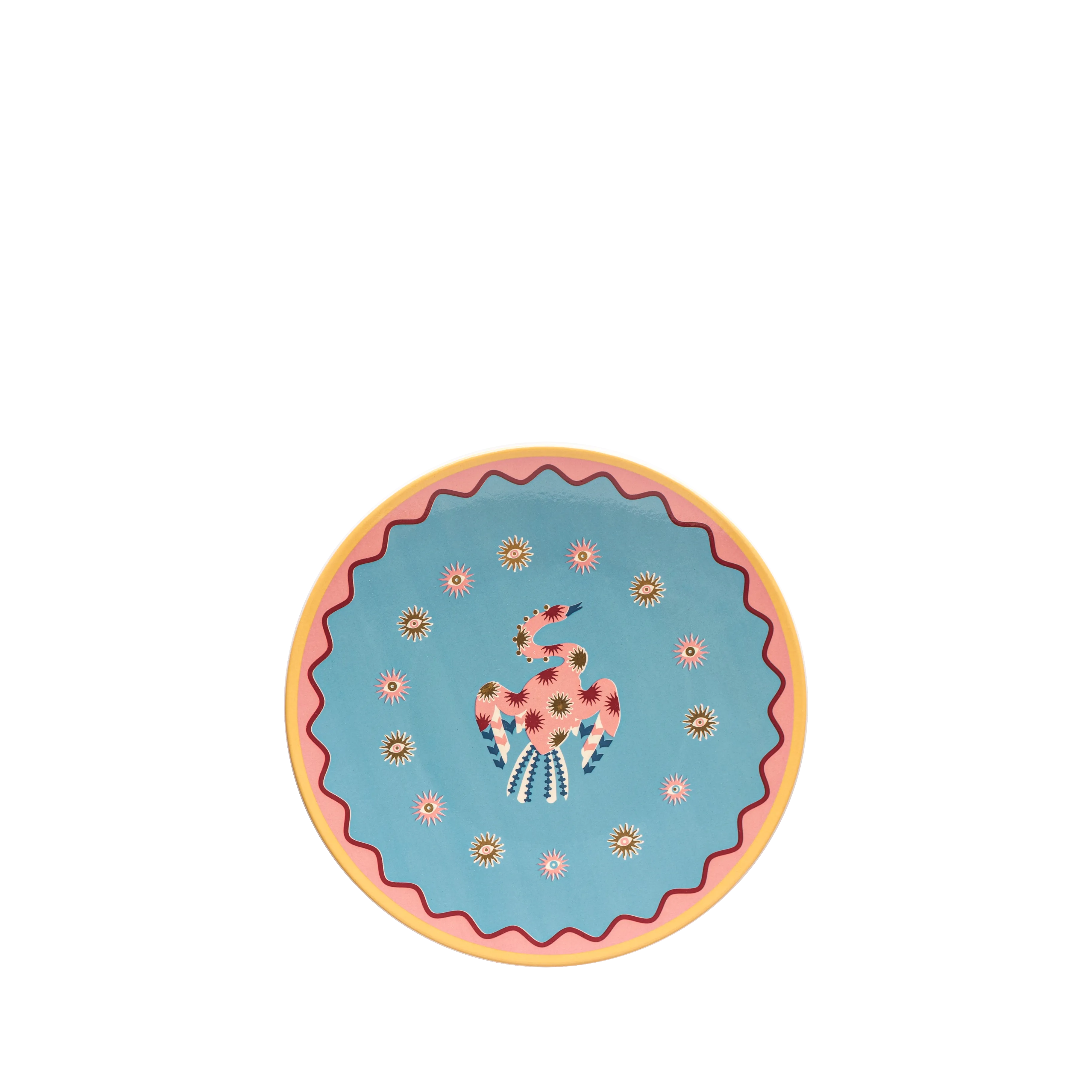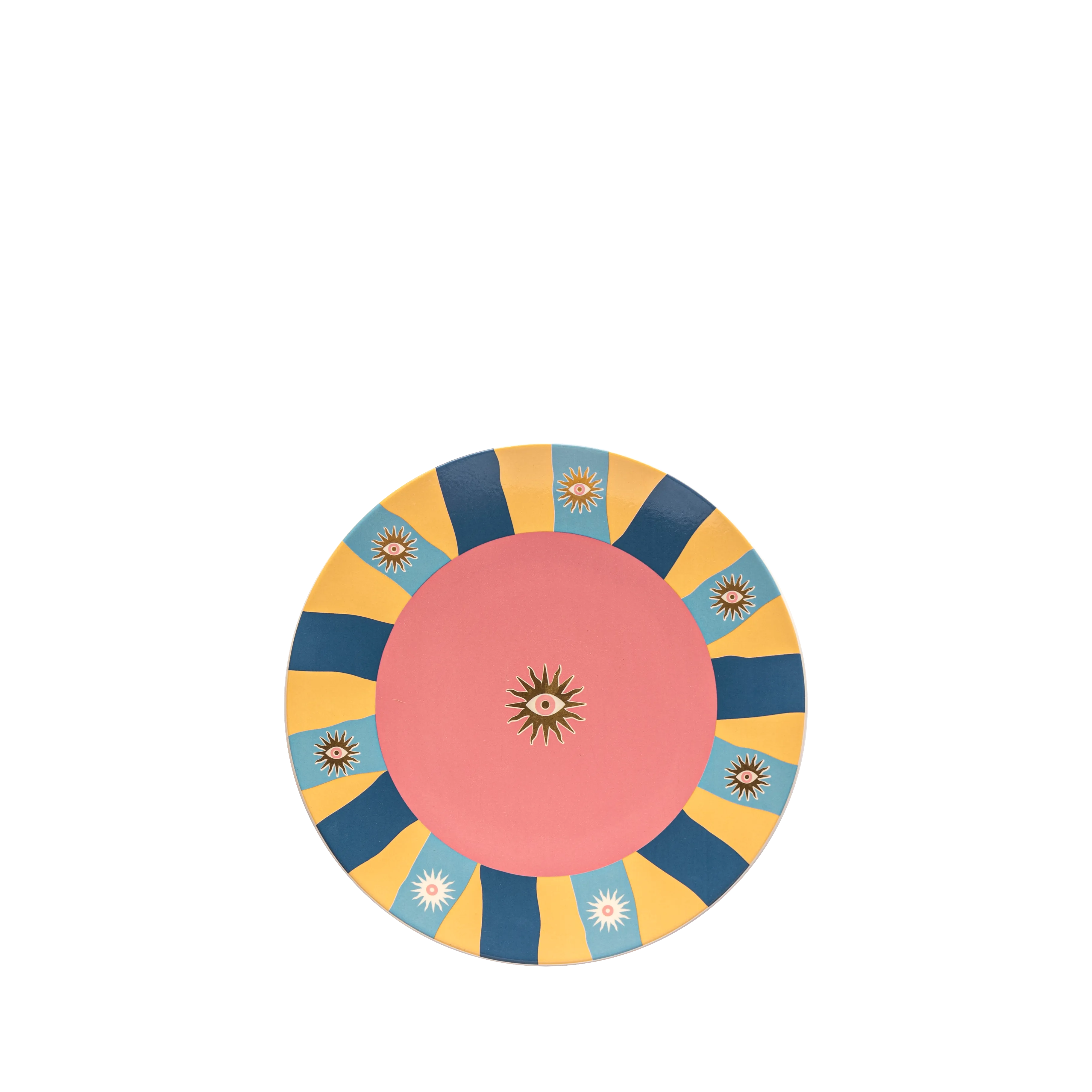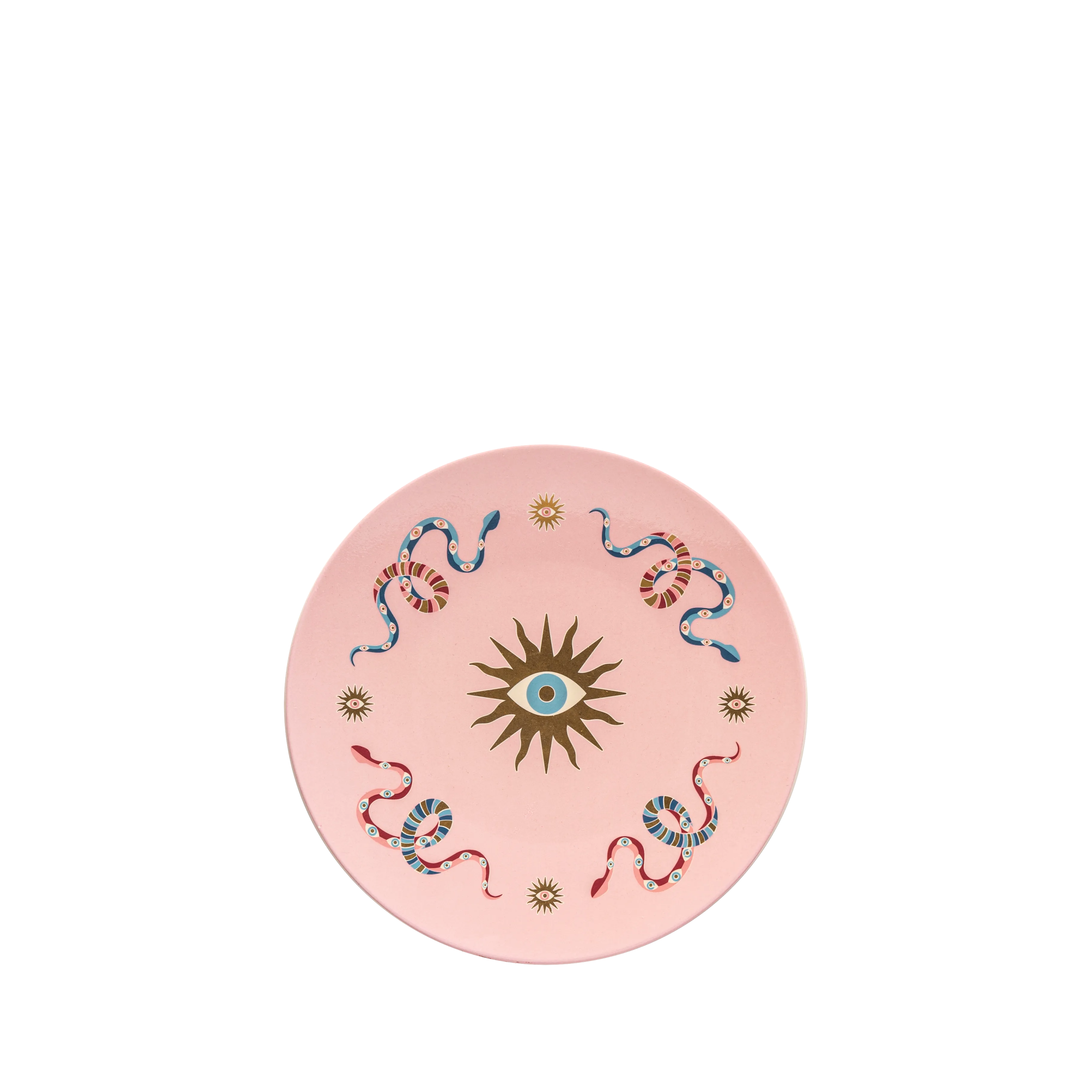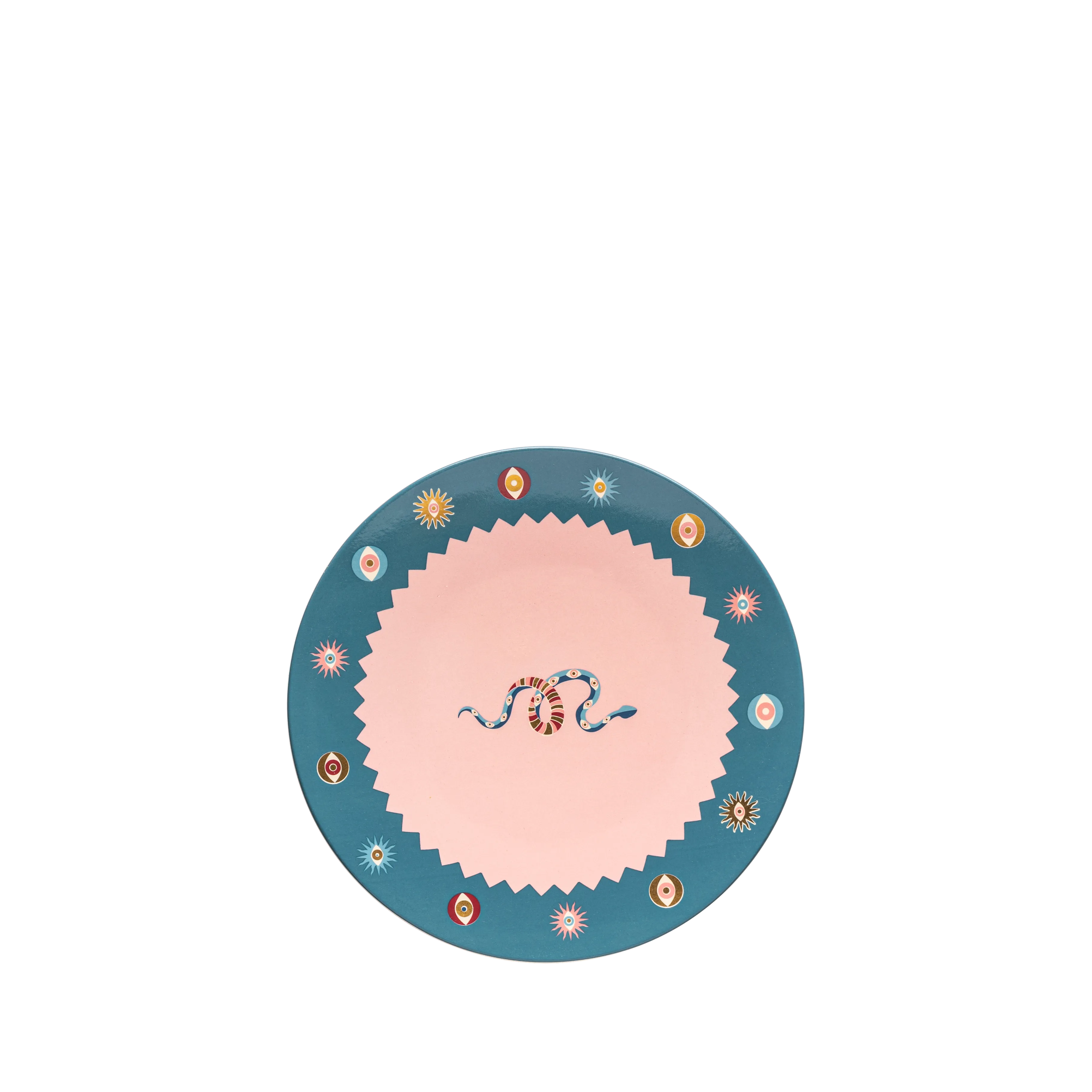 Playful and artistic, this dessert set brings together six unique pieces, from radiant eyes and celestial bursts to vibrant serpents and soaring birds. Each plate is a canvas of soft pastels and shimmering gold detailing, crafted on Fathy Mahmoud porcelain.