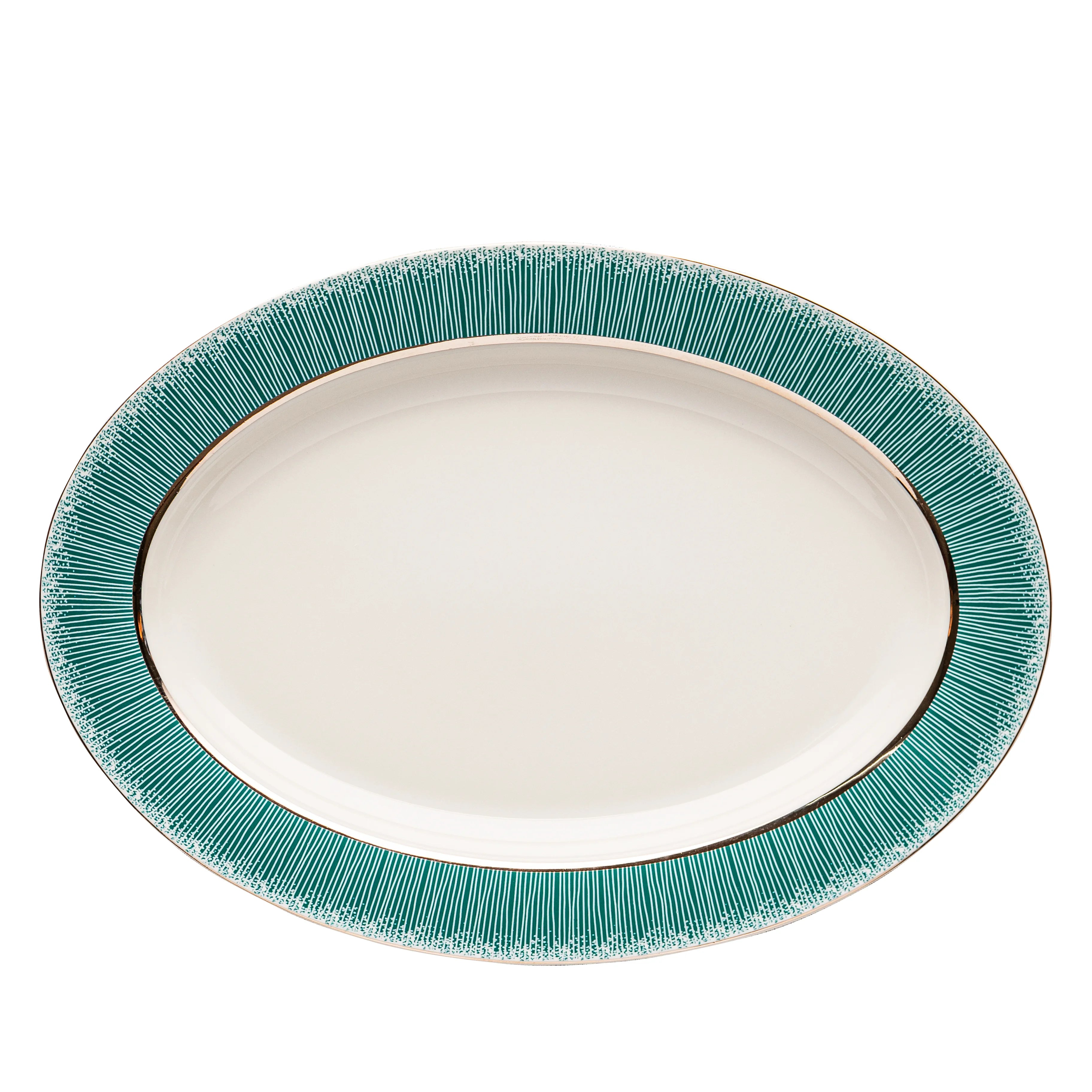 This contemporary Fathy Mahmoud porcelain set features a bold white spark of veins accented with a sleek silver rim. A striking design that makes a statement for modern dining experiences.