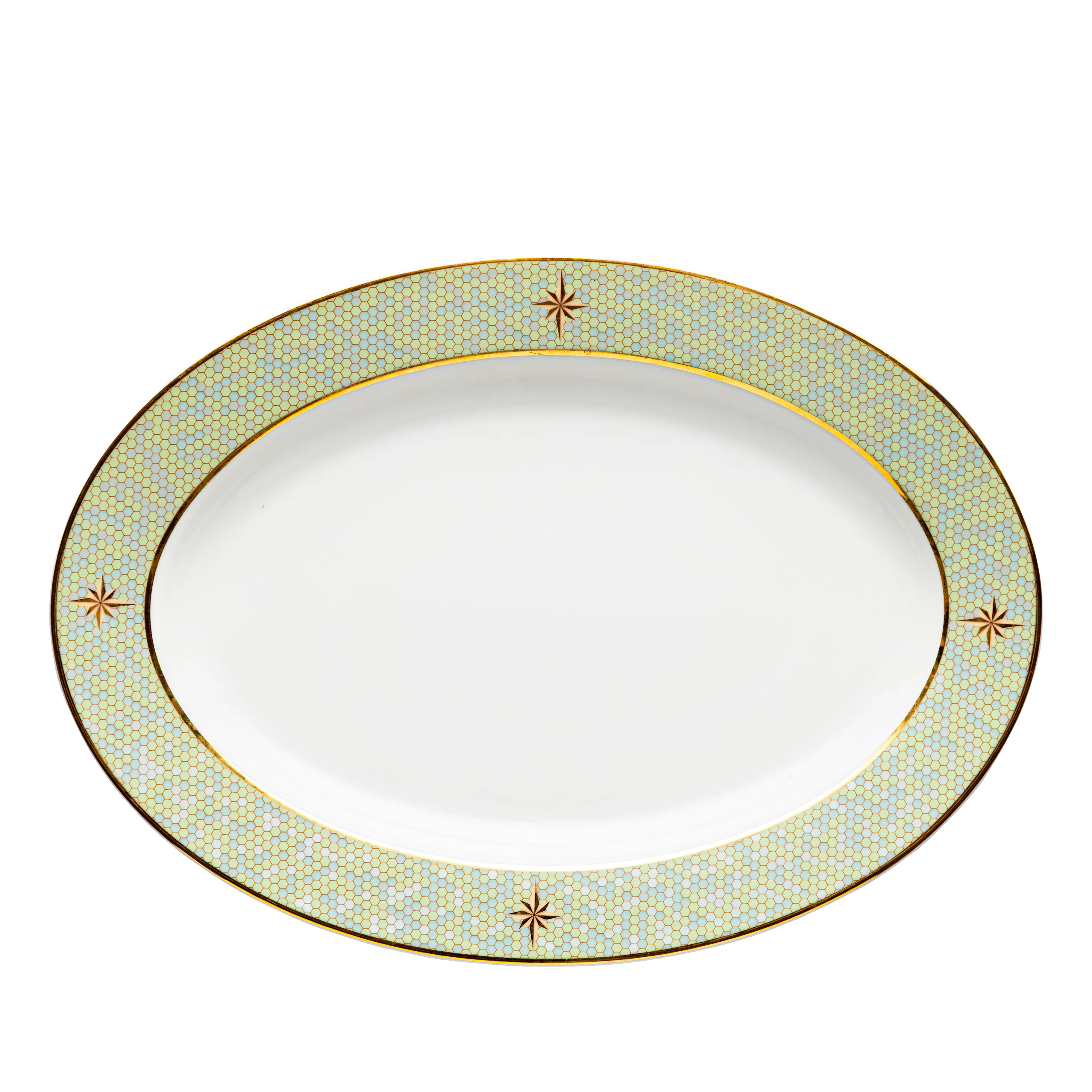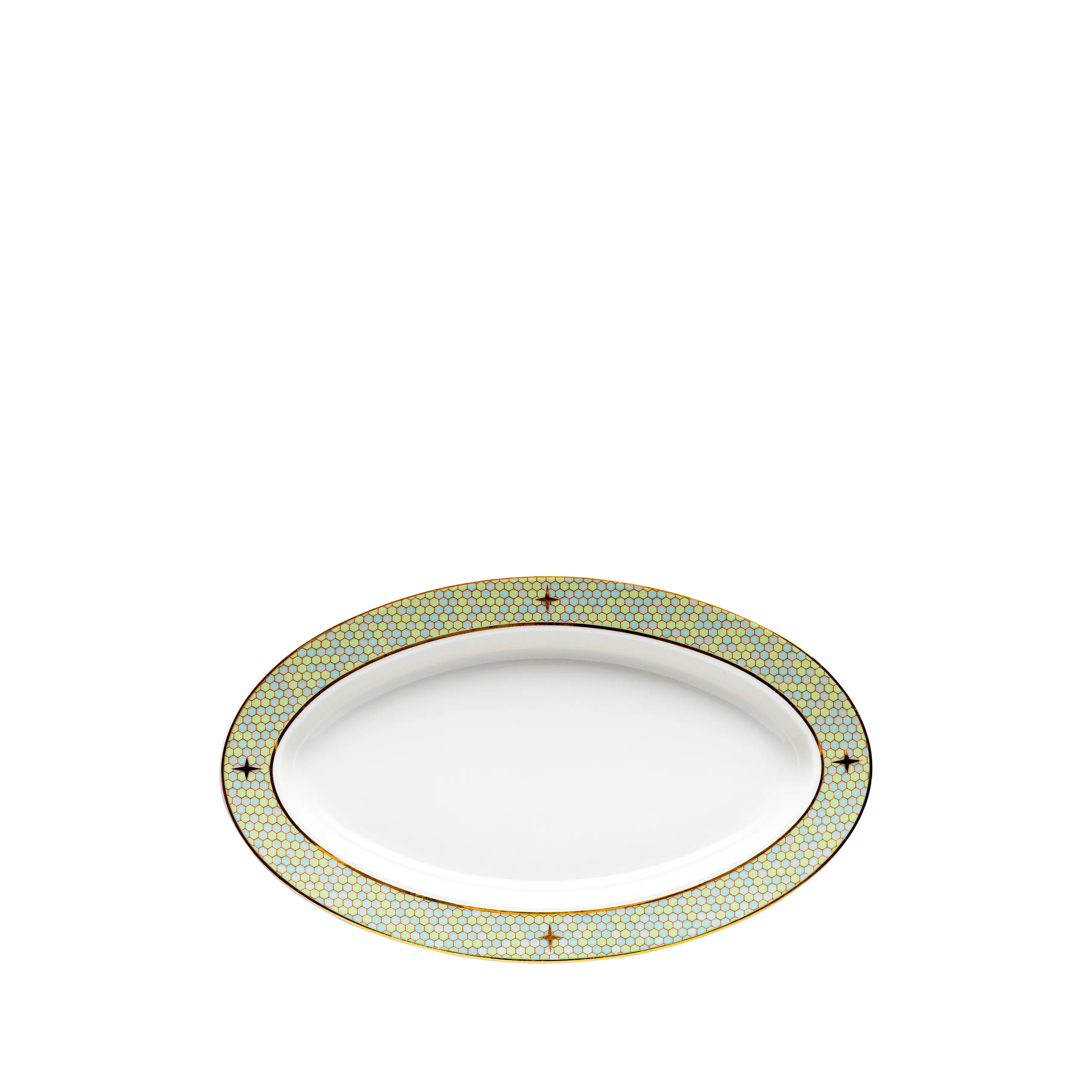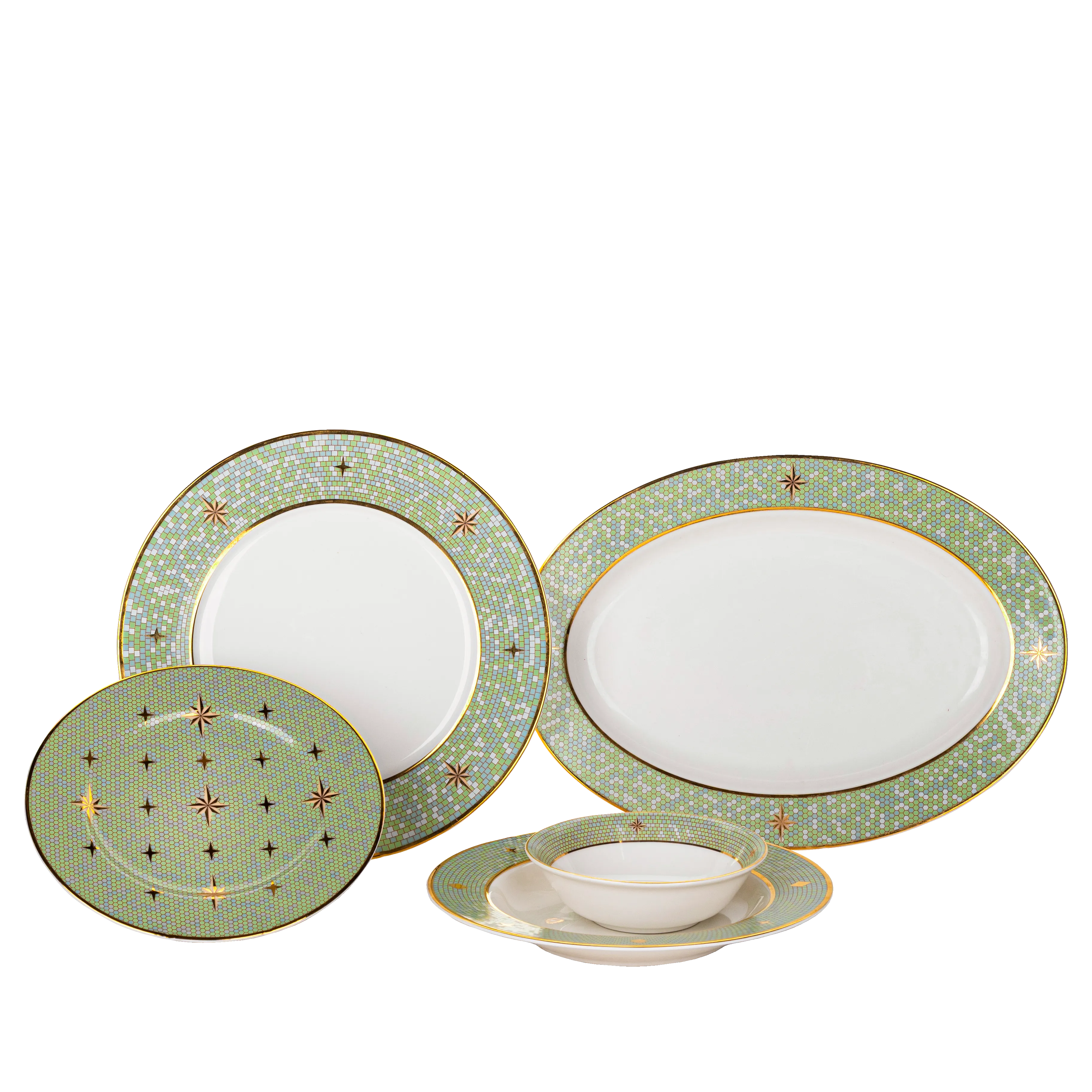 6 dinner plates, 6 soup bowls, 6 fruit bowls 12 cm, 1 oval platter, 2 pickle dish.